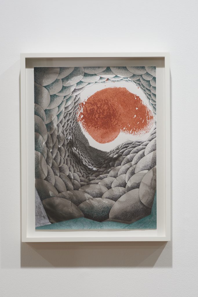 Le paysage est parfois aérien et les vapeurs et fumées évoquent alors la méditation et la volatilité des esprits. Mais Robel Temesgen fait aussi preuve d’un extraordinaire matiérisme. Les étranges formations grises à l’aspect capitonné qui se déploient dans le tunnel souterrain sont presque palpables. Malgré cette étonnante plasticité, impossible de déterminer leur nature : est-ce une matière organique ou minérale ?