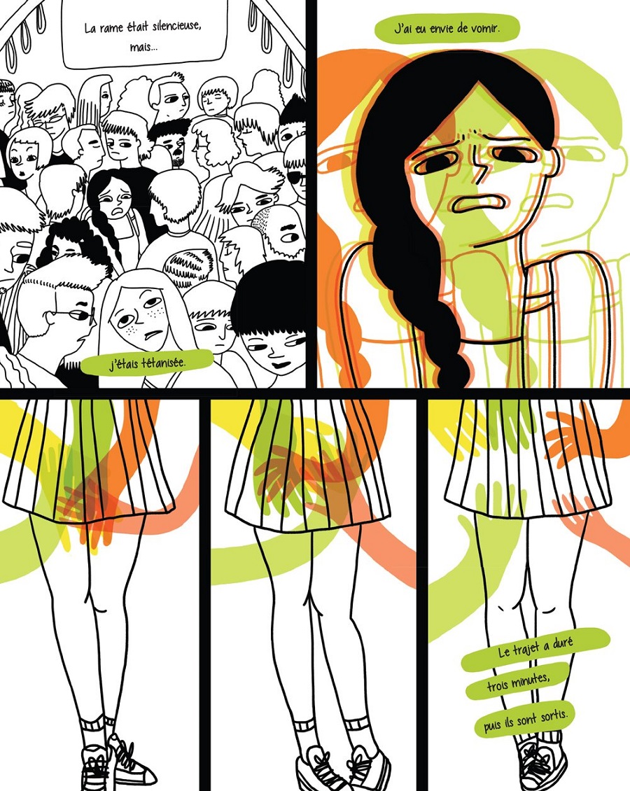 Enfin, la BD aux allures d’album, fraîchement traduite de l’anglais, Tu pourrais me remercier de Maria Stoian (chez Steinkis), est un parfait manuel pour prendre conscience de la banalité et de la gravité des violences sexuelles. Violences qui touchent majoritairement les femmes mais aussi les hommes que l’on retrouve aussi piégés sur certaines planches, chacune terriblement touchante.