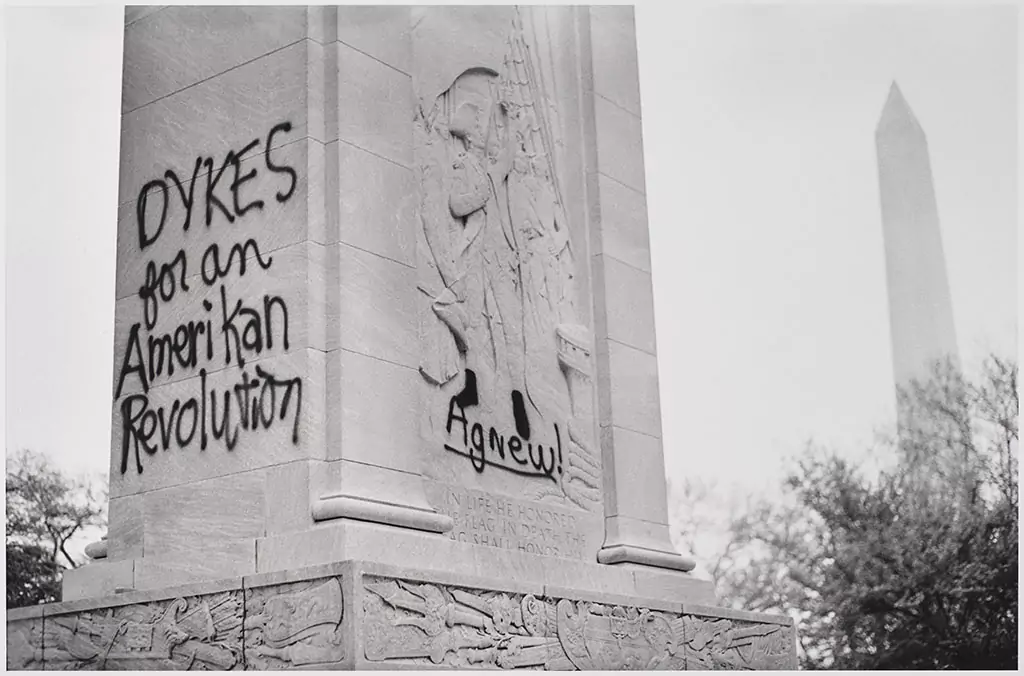 De la même manière que les archives reviennent au présent et définissent l’avenir, le spectre des violences passées menace à tout moment de s’installer à nouveau. Le mois dernier, la police est descendue dans un bar féministe à Paris, une action méritant des comparaisons aux émeutes de Stonewall. Un an après Stonewall, une image circulait dans laquelle Gottschalk – vingt ans à l’époque – tient une pancarte sur laquelle on lit : « I’m your worst nightmare. I’m your best fantasy » (Je suis ton pire cauchemar. Je suis ton meilleur fantasme). De telles photographies et de tels événements parlent donc de leur époque tout en interrogeant le moment présent, et soulignent, selon Hélène Giannecchini, « la marginalisation en continu, jusqu’à aujourd’hui, des vies qui ne sont pas solubles dans l’individualisme, la straightness, la course au progrès, la gentrification, la normalisation des corps et le désir de possession qui annihile tout autre désir. »
