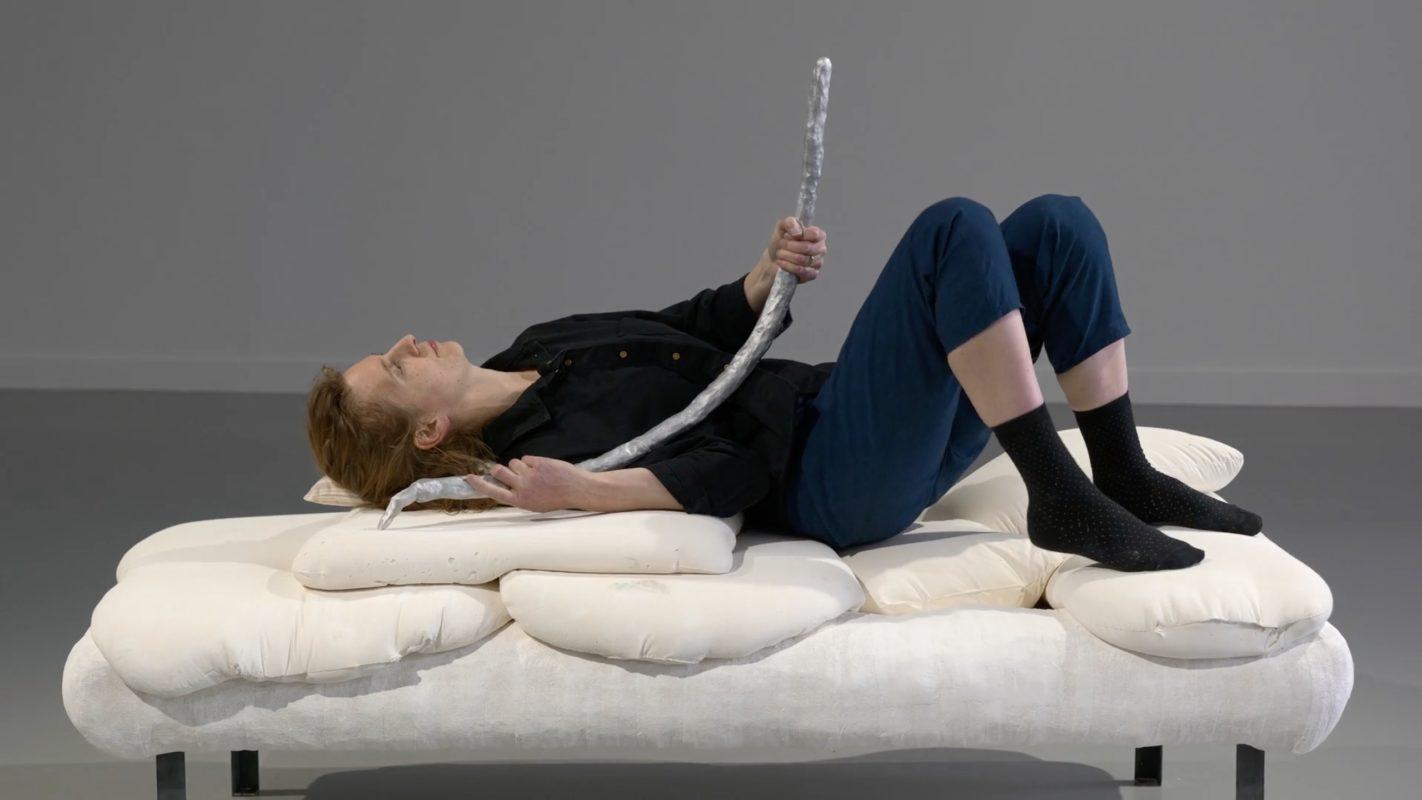 En réponse à la distanciation sociale et à la sédentarité forcée rythmant nos vies depuis plus d’un an, Bétonsalon propose une exposition politique qui inaugure le programme de la curatrice et critique d’art Émilie Renard, nommée à la direction du centre d’art et de recherche en janvier 2021. Par la mise en scène de corps épuisés, empêchés, invisibilisés, stigmatisés ou vulnérables, l’exposition « vise à rendre perceptible le signal faible de leurs puissances » et « fait l’hypothèse d’un corps mobilisé, délibérément déloyal envers ses fonctions biologiques et rationnelles ». De l’installation à la vidéo en passant par la sculpture, la performance et l’archive, Le corps fait grève rassemble des œuvres de quatre artistes plasticien·nes proposant les histoires de corps en marge des hégémonies et structures de pouvoir. Parmi elles, on découvre un portrait personnel de Babi Badalov à travers le récit de son errance administrative pour obtenir l’asile politique, la rencontre intime et subjective entre des corps d’amant·es ou d’ami·es racontée par Amie Barouh, les corps soumis à des « relations assisté·e/assistant·e » dans les expérimentations de Florian Fouché, et les monologues des alter ego fictifs d’Hedwig Houben.