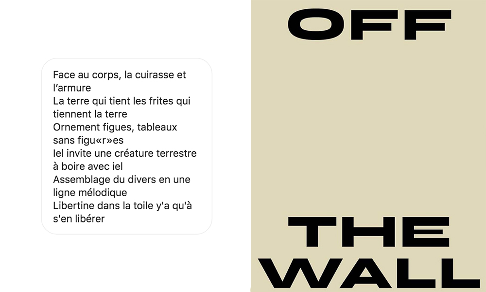 OFF THE WALL est une expo boomerang. Pensée et construite à Limoges, elle débutera à Bruxelles avant de retourner dans le Limousin finir son épopée. La première partie belge aura lieu du 20 au 23 mai à COHERENT, artist-run space à Ixelles. La seconde se tiendra à l’école des Beaux Arts de Limoges du 25 au 28 mai, avec neuf autres plasticien·nexs. Pour le volet bruxellois, les sept artistes Aëla Cabel, Cécile Flory, Lorraine Garnier, Anna Haillot, Marie-Caroline Locquet, Marie pic et Yao Tan proposent un ensemble de sculptures. La végétation devient motif et actrice dans un espace où se jouent des histoires sans humain·es. Les œuvres mettent en image des récits destinés aux êtres qui mangent et qui boivent, qui ont des poils, qui se rassemblent, qui s’ornent de bijoux. L’exposition est curatée par Matthieu Michaut, sur invitation de Nicolas Tourre et du duo de COHERENT – Tommy Lecot et François Patou.