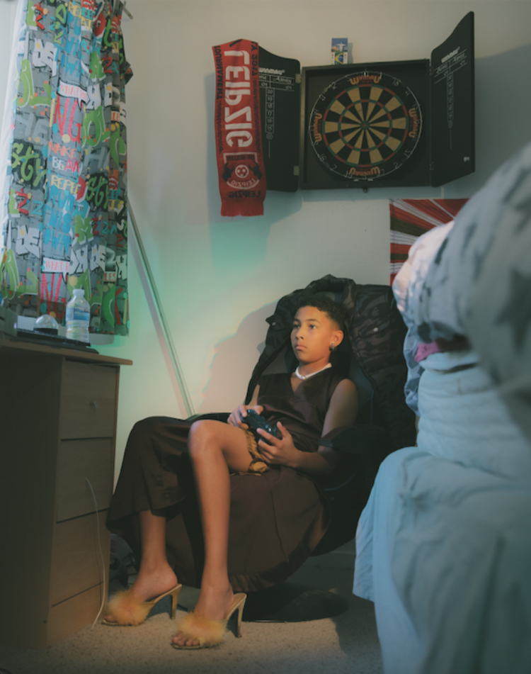 Dans cet espace de liberté qu’est la séance photo, les garçons testent de nouvelles façons de manifester leur personnalité. Dans « Blah Blah Genitals » ils explorent leur genre, le construisent même parfois et l’élargissent en dehors du cadre conventionnel de la masculinité des enfants de leur âge. Portraiturés chez eux, ils se prennent au jeu de façon spontanée. Aux côtés de la styliste Lorena Hydeman, ils élaborent des looks qui leur procurent de la joie avant tout. Et ces derniers sont souvent à des kilomètres de la masculinité enfantine et sportive qu’ils performent dans leur quotidien. « Blah Blah Genitals » ouvre donc grand les portes aux nouvelles représentations non pas de la, mais des masculinités et des identités. Julia Falkner et Lorena Hydeman espèrent offrir une chose ; un grand catalogue d’images dans lequel les futures jeunes générations pourront regarder, s’identifier, se distancier ou en tout cas se construire dans la diversité des masculinités.