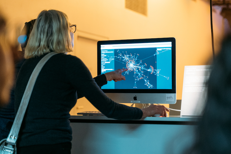 Exposition résolument actuelle, Computer Grrrls s’inscrit dans une double tendance, à la fois la réflexion sur la manière dont les technologies et les médias sont pensé.e.s et nous affectent, et la remise à l’honneur des femmes, grandes oubliées de l’histoire. Elle nous permet un questionnement fécond sur Internet et le “progrès technologique”, afin de dépasser leurs aspects néocolonialistes et sexistes. En continu, les visiteurs sont amenés à contribuer à la production de savoir autour de l’exposition : Roberte Larousse offre à chacun.e la possibilité de compléter Wikifemina, une encyclopédie où rassembler des infos sur les femmes de l’informatique mais surtout, avec sa cartographie en réseau, montrer les connexions et interactions entre ces femmes qui ont contribué à fabriquer les technologies