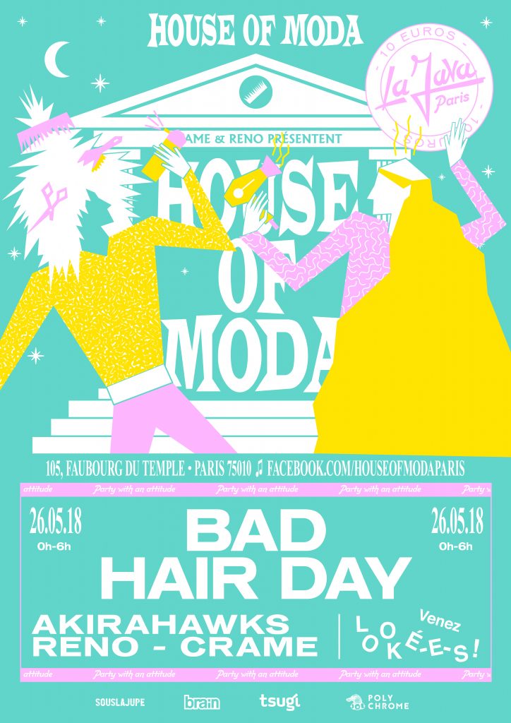 Ce samedi 26 mai à La Java, Reno et Crame, les deux organisateurs, nous convient pour la Bad Hair Day. Pour l’occasion, Reno à concocté une playlist qui inclut une série d’artistes ayant participé aux House of Moda.