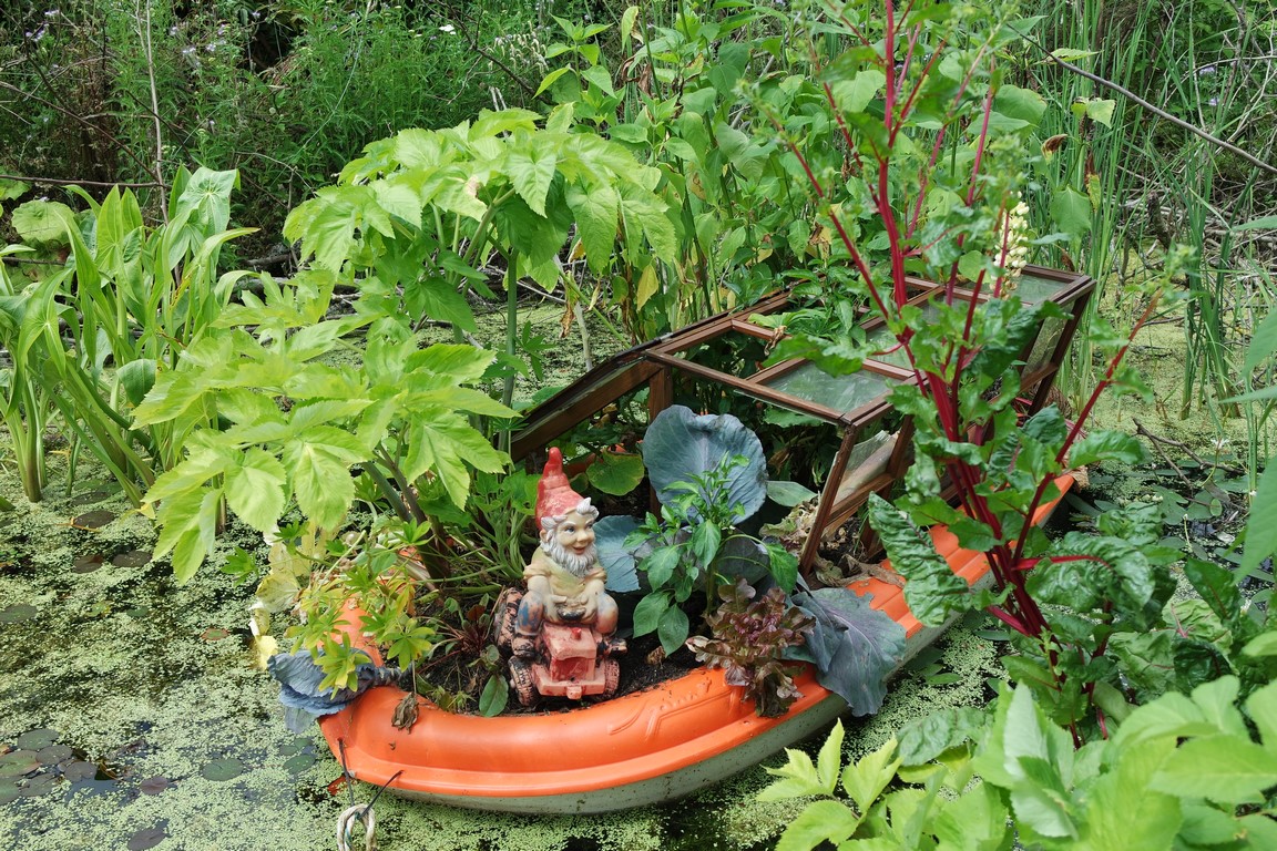 Ce jardin-ci est une petite histoire à part entière, vous pouvez découvrir à quoi ressemblerait la vie après la montée des flots. Vous êtes un peu ce Robinson qui vit dans son grenier et cultive ses légumes à fleur d’eau. Créé par Lélia Demoisy, Julie Mahieu, Adèle Hopquin et Maud Negron.