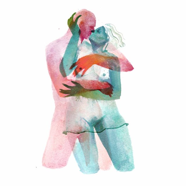 Louise dessine des figures humaines par aplats de couleurs, mêlant encre et crayon. Les corps évanescents se mêlent et se démêlent. Dévoilement de l’intimité, exploration de l’ambiguïté des sentiments humains.