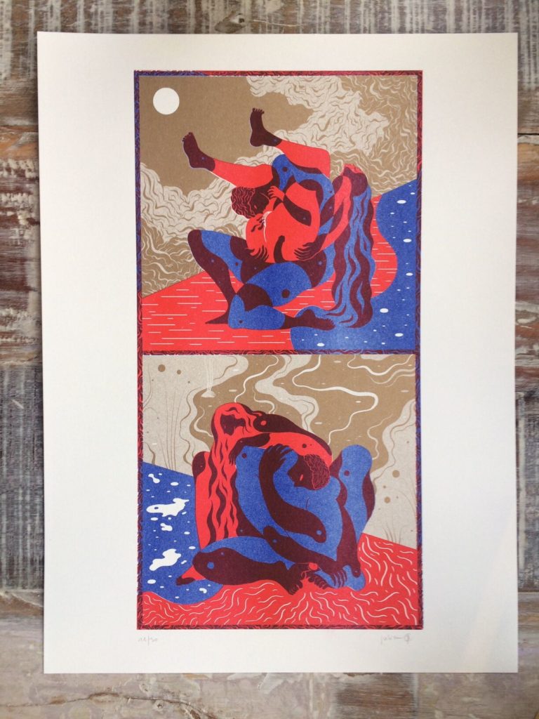 Peu importent le format, les couleurs, le médium ou le traitement, chaque artiste présente sa version du désir et du plaisir sexuel. Si certain.e.s exhibent des corps entremêlés en pleine extase, d’autres préfèrent suggérer subtilement l’érotisme. Pas de manière canonique ou de hiérarchie dans la représentation de la sexualité , si intime et universelle à la fois…