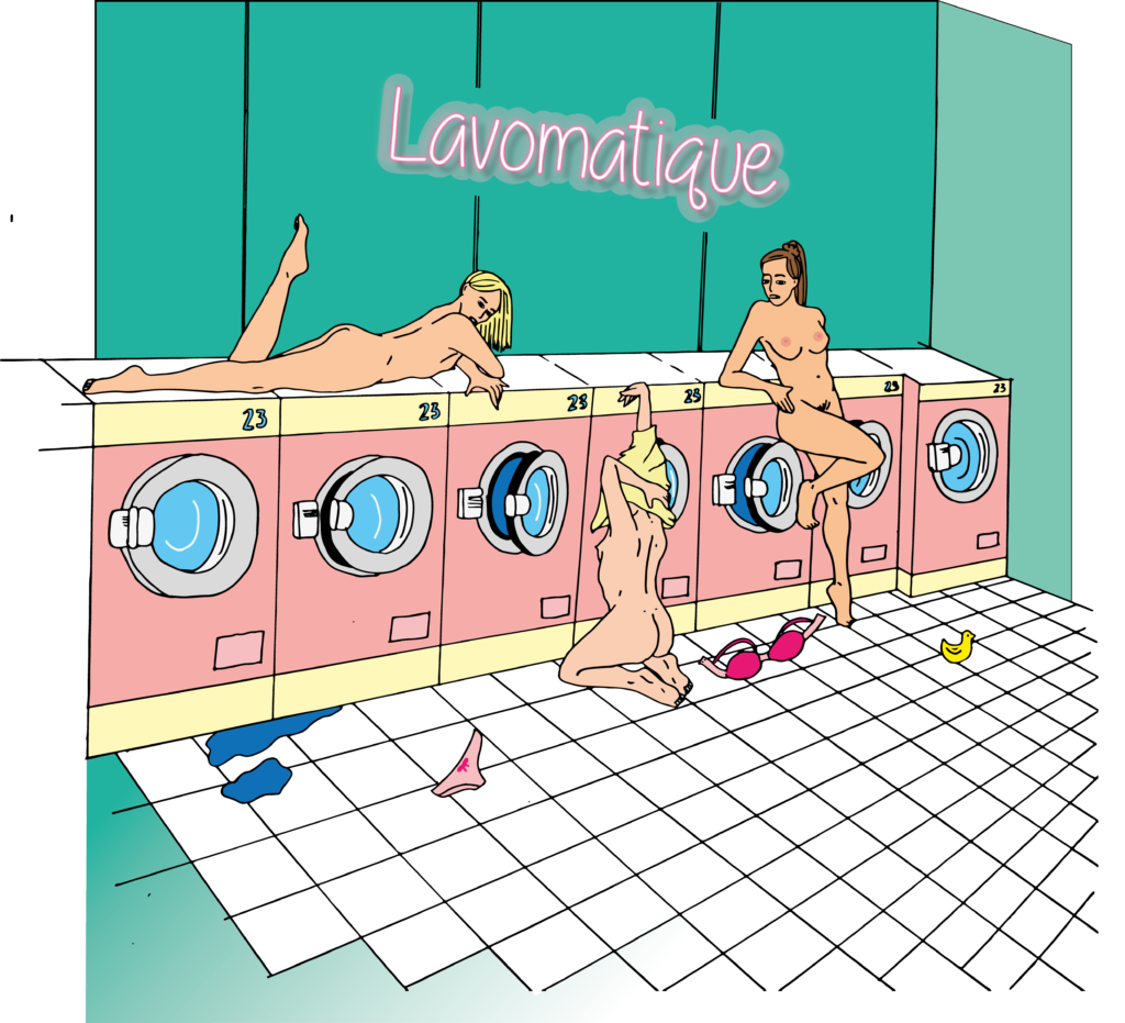 Passionnée de graphisme et de dessin, Romane représente des femmes nues dans des univers quotidiens à l’esthétique léchée inspirée de la pop culture. Les corps sveltes et purs questionnent les dictats de beauté.