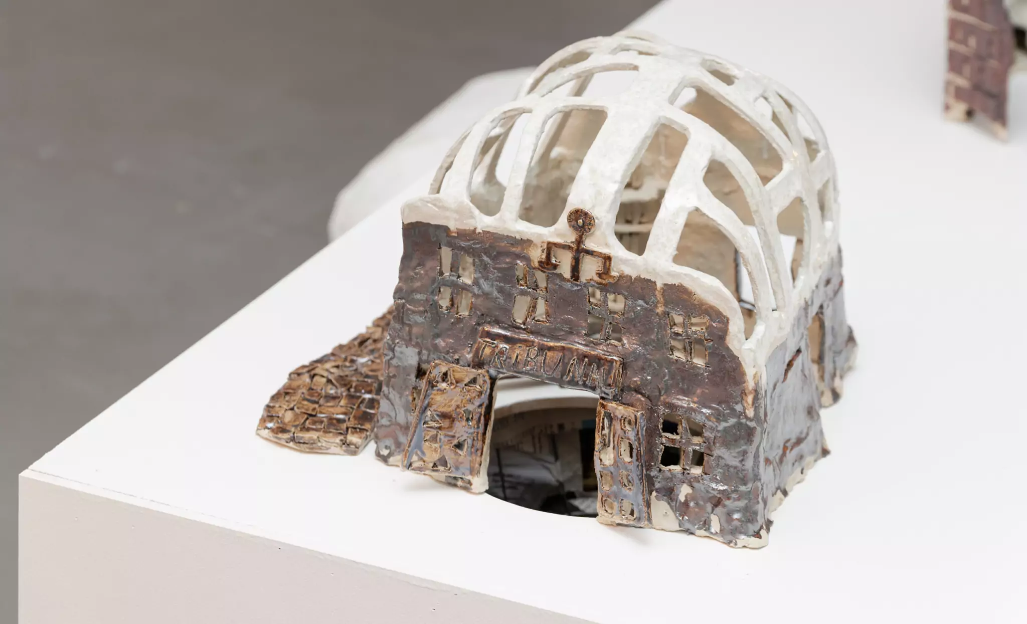 Elle s’intitule Détente institutionnelle. Ce sera un ensemble de sculptures représentant les institutions de Montreuil. Il y a la mairie, le tribunal, l’école, l’hôpital, le conservatoire, la bibliothèque et le commissariat – il n’y a pas de prison à Montreuil. Les habitant·es ne seront pas représenté·es, ce seront avant tout des maquettes de bâtiments, intégrées à une installation globale et non isolées sur des socles individuels. Elles seront exposées elles-mêmes sur une sculpture, avec un système de tuyaux qui relie les bâtiments entre eux. Ce sera une des pièces centrales de l’expo.