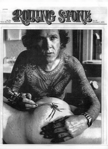 I have another story about these T-shirts. The Chelsea Hotel was the place I used to stay when I was in New York City. So one day I go out from the hotel and there is a guy walking down the street wearing my goddamn body shirt on him! So I yell at the guy, he runs over across the street waiting for me on the sidewalk and I walked up, do you know who is the guy? John Lennon! He was wearing my shirt! They were filming Superfly at the Chelsea Hotel, that’s why he was there. He bought it downtown in a store, liked it but didn’t know anything about it! So, from the late 60’s to the mid 70’s weird things happened you know, Rolling Stones Magazine, these body shirts made from my tattoos, Janis Joplin and the others, this story with John Lennon… It was all about timing.