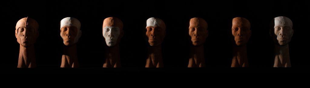 Par la confrontation des matériaux, certaines œuvres de Makouvia Kokou Ferdinand semblent instables quand d’autres sont en évolution. Les céramiques-autoportraits de l’installation Le Parlement se répètent, se brisent et se recomposent dans Transformed Component. La sculpture J’ai gardé le réflexe s’active avec la performance dans Twenty-eight minutes inside… entre animation de l’objet, jeu de matières, et métaphore de notre condition individuelle et sociale.