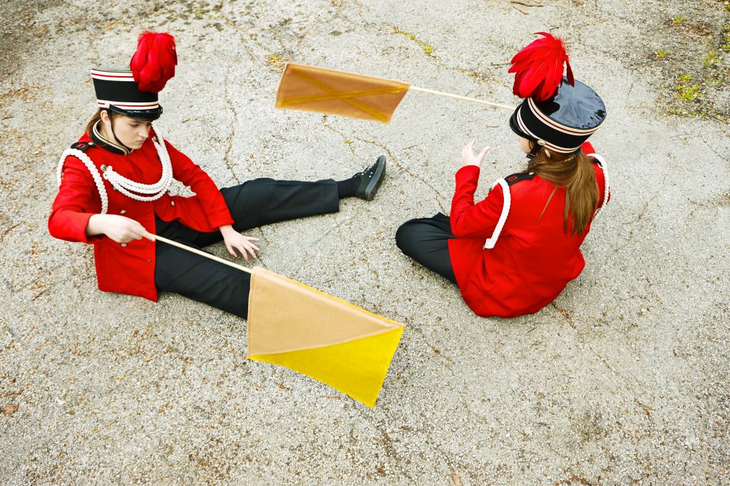 « Smoke Bombs » est la suite logique des travaux précédents, mais ils sont un petit peu différents sur leur nature autobiographique. C’est toujours un entre-deux, entre la réalité et la fiction, se concentrant sur les costumes et les uniformes, où les sujets interprètent des personnages qui font partie d’un groupe, d’une équipe.
