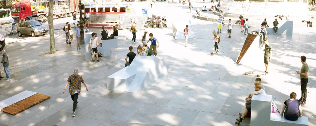 La pratique directe, active et originale de l’espace et des matériaux avec le skate influence évidemment le travail d’un sculpteur. Mais sa vision de l’espace urbain est aussi géopolitique et, comme le street art, marquée par l’idée de liberté comme pratique concrète.