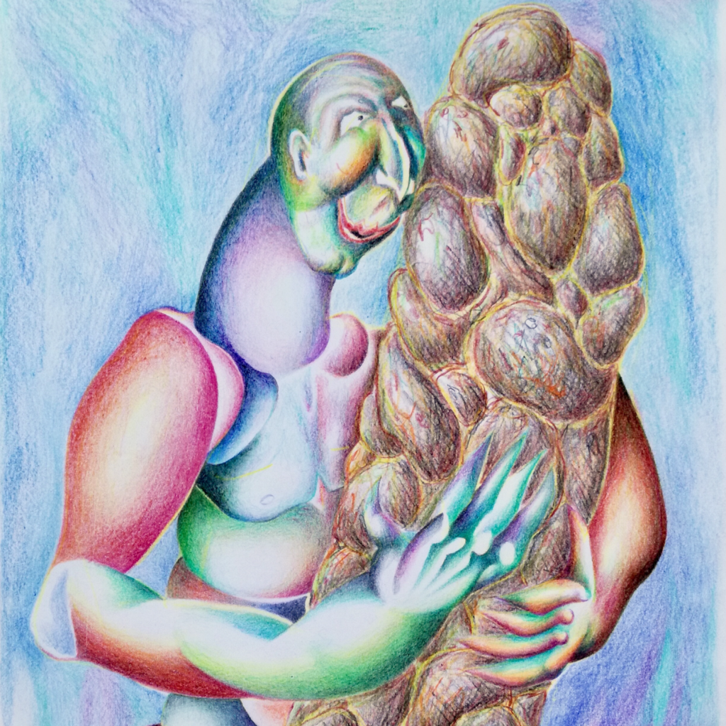 L’expérimentation, d’un point de vue pictural, occupe une place conséquente dans ma pratique. La découverte de nouvelles techniques et leur mélange offrent sans cesse la possibilité de renouveler ses formes et son esthétique. En ce moment je m’exerce beaucoup à l’aérographe et au dessin numérique qui permettent de jouer sur les flous des contours et la superposition de couleurs.