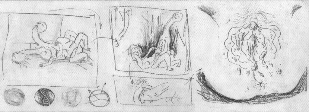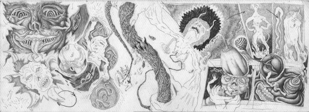 À l’adolescence, lorsque mon homosexualité s’est révélée, j’ai eu le sentiment que je brûlerais en enfer et c’est de là que tout est parti. Les monstres, les personnages déformés et la violence sont pour moi des manières de remettre en question la norme.
