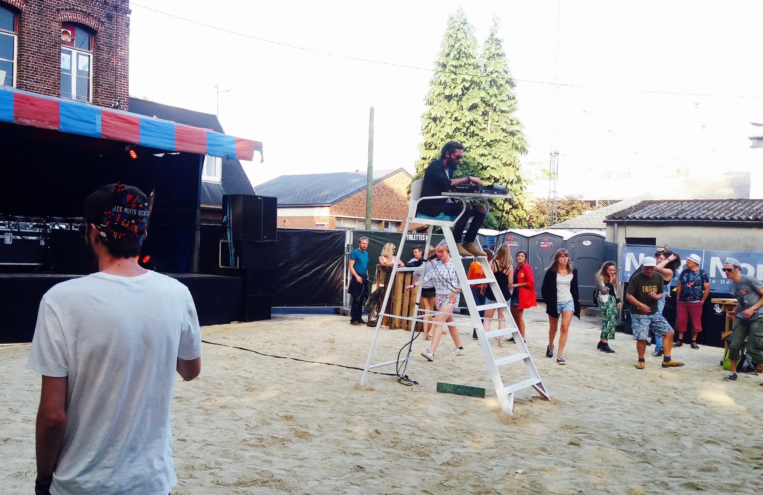 Dimanche. – Petit tour au carré plage et dj set du Jardin avant mon interview avec Mansfield.TYA prévue à 18 heures. J’ai la bonne surprise de tomber sur un set qui change un peu de ce qu’on a l’habitude de voir. Le dj est perché sur une chaise de surveillant de baignade et passe des titres parfois solaires parfois inattendus. Difficile de croire qu’on est dans le Nord-Pas-de-Calais.