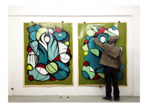 C’est Hazul Luzah qui est l’artiste collaborateur, il est de Porto et c’est un artiste de rue, principalement. Nous avons sélectionné une de ses œuvres, très graphique, psychédélique, à dominante bleue ; une œuvre qui le représente et qui va avec Rua 148 et nous allons l’imprimer sur le tissu, l’appliquer, l’intégrer à la collection !