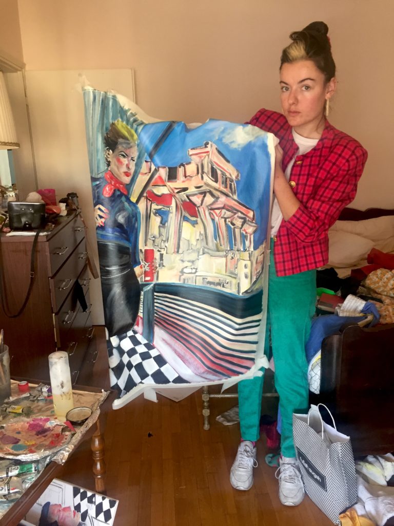 C’est pour ça que pour mon diplôme de fin d’année l’année dernière, j’ai présenté de la peinture mais j’ai joué un personnage : j’ai mis une combi rose et je parlais très fort, je m’appropriais l’espace. On a enfin regardé la femme derrière les tableaux et on m’a mis une bonne note pour la « qualité du personnage ». Ils n’ont pas spécialement apprécié mon travail, on était tombé dans l’extrême inverse. C’est peut-être ça l’art au final, un personnage, une forme d’imposture, puisque moi-même je ne me reconnais pas en tant que peintre.