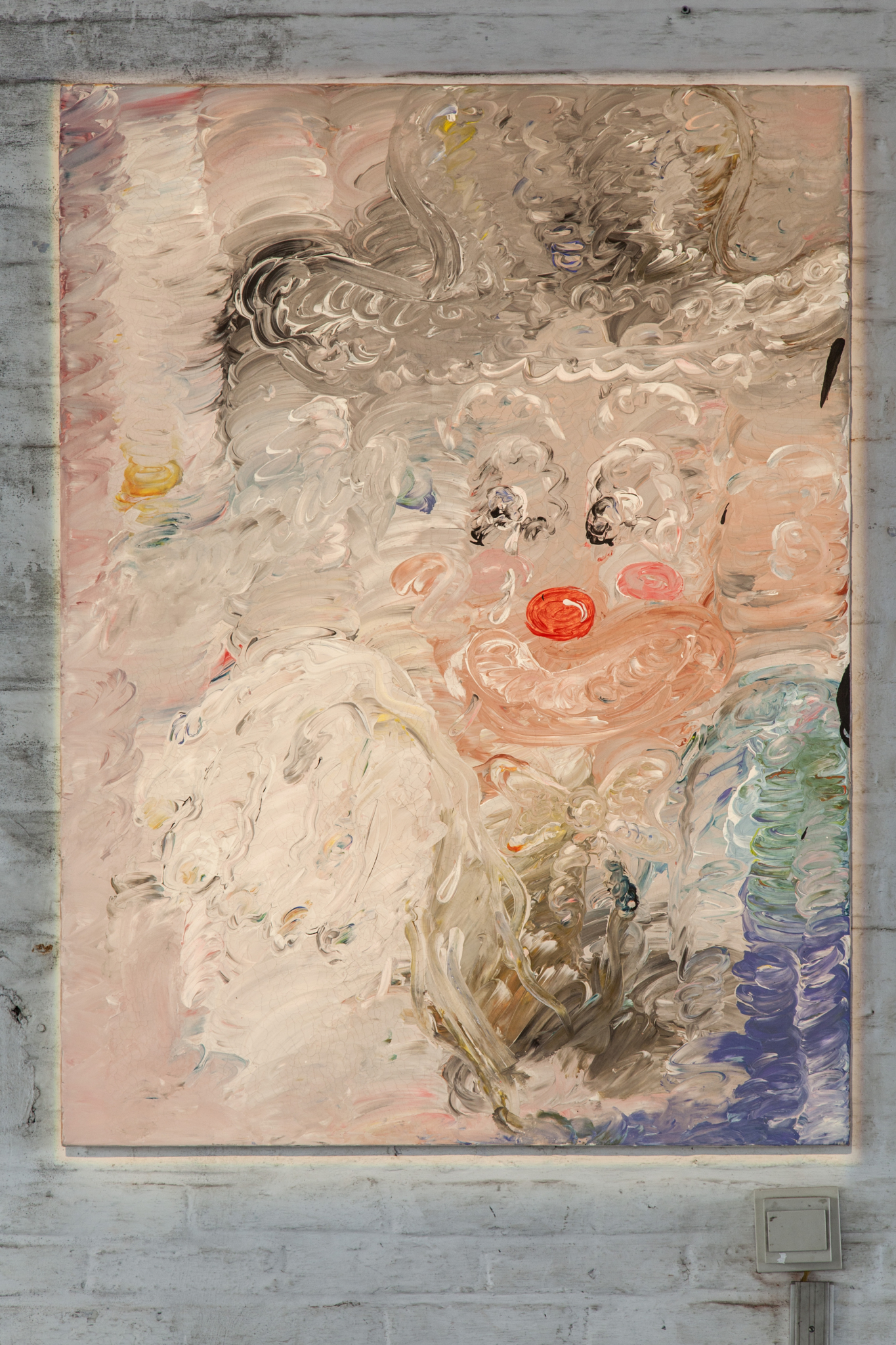 J’ai beaucoup chanté, avec mon amie Charlotte aka Charlène Darling, des chansons assez sexuelles, tristes et mélodramatiques. Je chantais surtout devant un autoportrait de moi nue sur un lit en train de regarder un livre avec deux clowns, avec une énorme réverbe dans ce lieu industriel, froid. C’était cauchemardesque, beaucoup de gens me l’ont dit. Ielles ont trouvé ça assez sombre comme ambiance, presque glauque. On m’a beaucoup demandé ce qui se passait dans mes rêves, si mes peintures étaient la mise en image de mes cauchemars, si j’étais amoureuse de quelqu’un·e qui fait de la trompette…