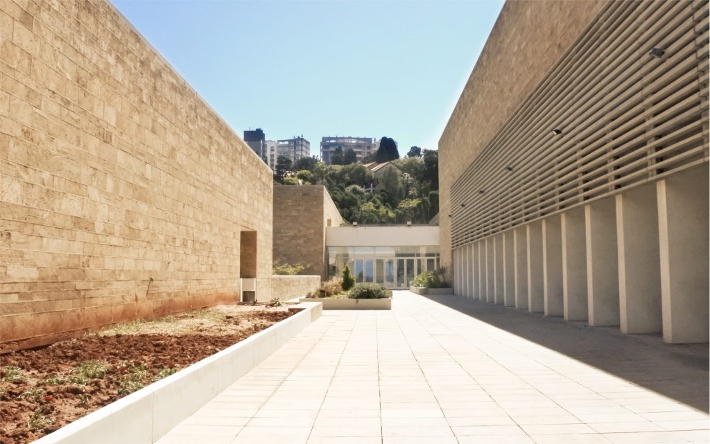 C’est ma dernière découverte en date depuis que je suis ici — environ deux semaines. Je traînais à l’American University, au nord-ouest de Beyrouth. C’est un campus à l’américaine, morceau d’Occident pullulant de chats (gâtés et choyés au point où y manger tranquillement un sandwich au poulet n’est pas vraiment envisageable) planté entre Hamra et le front de mer. Pour aller voir celle-ci il suffit de sortir à l’opposé de l’entrée principale, du côté de la piscine, par une zone à l’architecture qui se veut peut-être plus évocatrice de l’ambiance maritime méditerranéenne — et qui me fait beaucoup penser au Mucem ou à certains pavillons de l’exposition universelle de Milan.