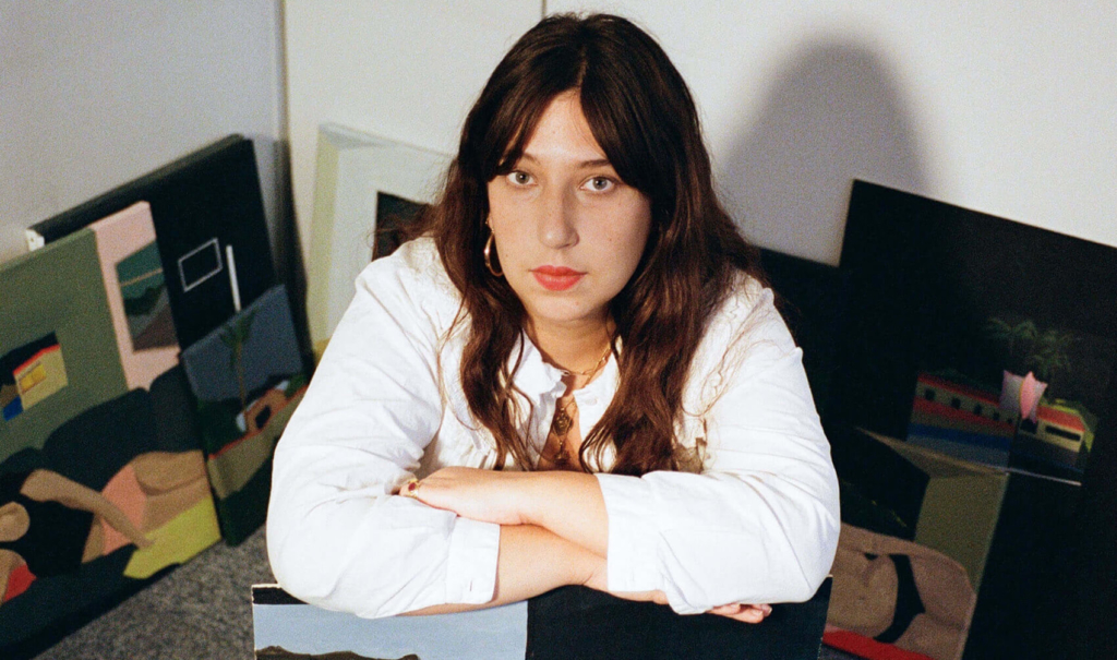 C’est l’instinct qui guide Agathe dans tout son processus créatif, du croquis au choix des couleurs. À la manière du collage, elle pioche des images dans de vieux magazines, des films et sur internet. Dans sa « banque d’images et d’émotions », elle isole ce qui la touche – un ton, une composition, une posture – et compose un croquis sur une feuille de papier avant de poser les aplats sur ses toiles. La couleur est quelque chose de spontané pour Agathe, qui nous confie que « mélanger des couleurs, les préparer, faire des correspondances » est ce qu’elle trouve le plus exaltant dans la peinture. Sur l’une de ses toiles petit format, elle peint un ciel rose comme pour déranger nos attentes. « J’aime bien l’idée que l’interprétation ne soit pas imposée, ça permet aux gens de se faire leur propre film à partir de mes peintures » conclut-t-elle.