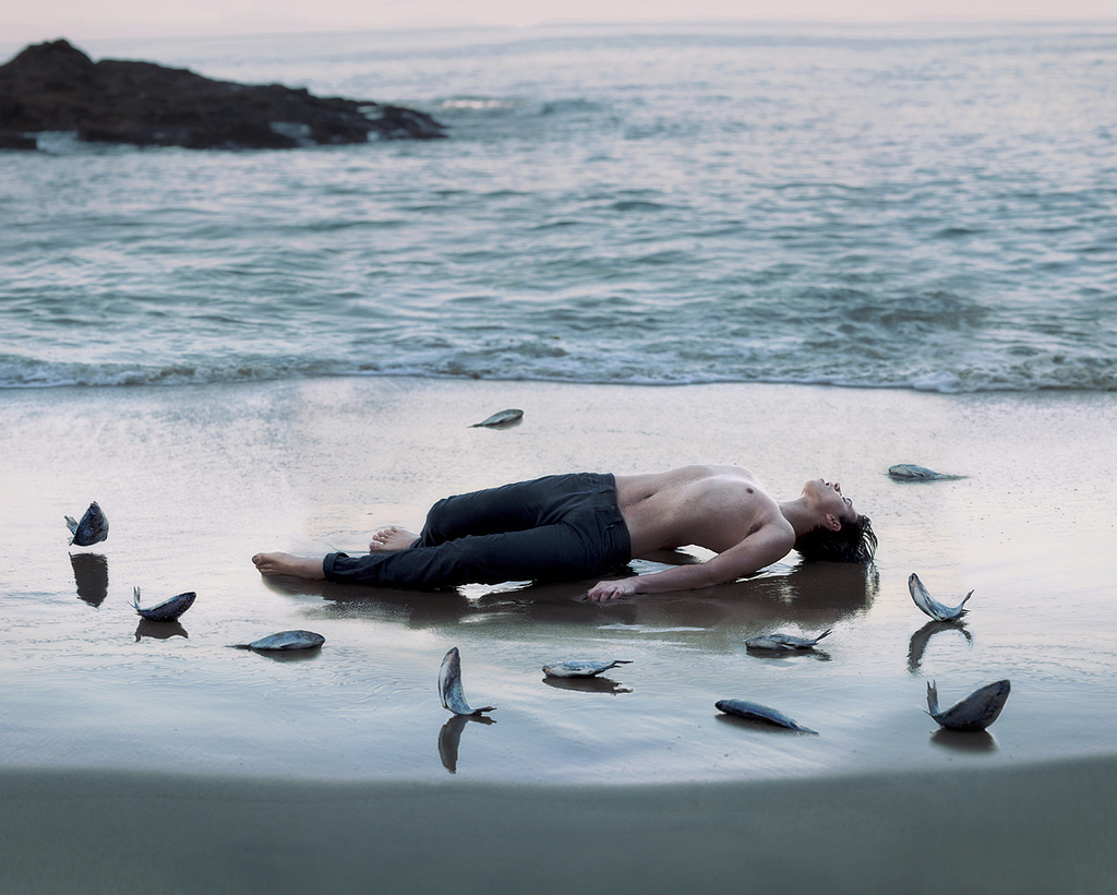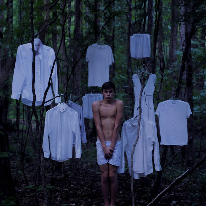 La photographie d’Alex Stoddard laisse planer une magie inquiète. Le jeune artiste américain de 23 ans crée un univers surréaliste. Le corps, souvent offert nu, est omniprésent, central dans une nature aux couleurs sombres. Les regards sont mélancoliques, souffrants. L’environnement est hostile autour de ces personnages torturés. Les images sont fortes. Une force soulignée d’autant plus par l’absurdité de la construction des images. La beauté de ces photos est sauvage. Chacune d’entre elles, frappante.