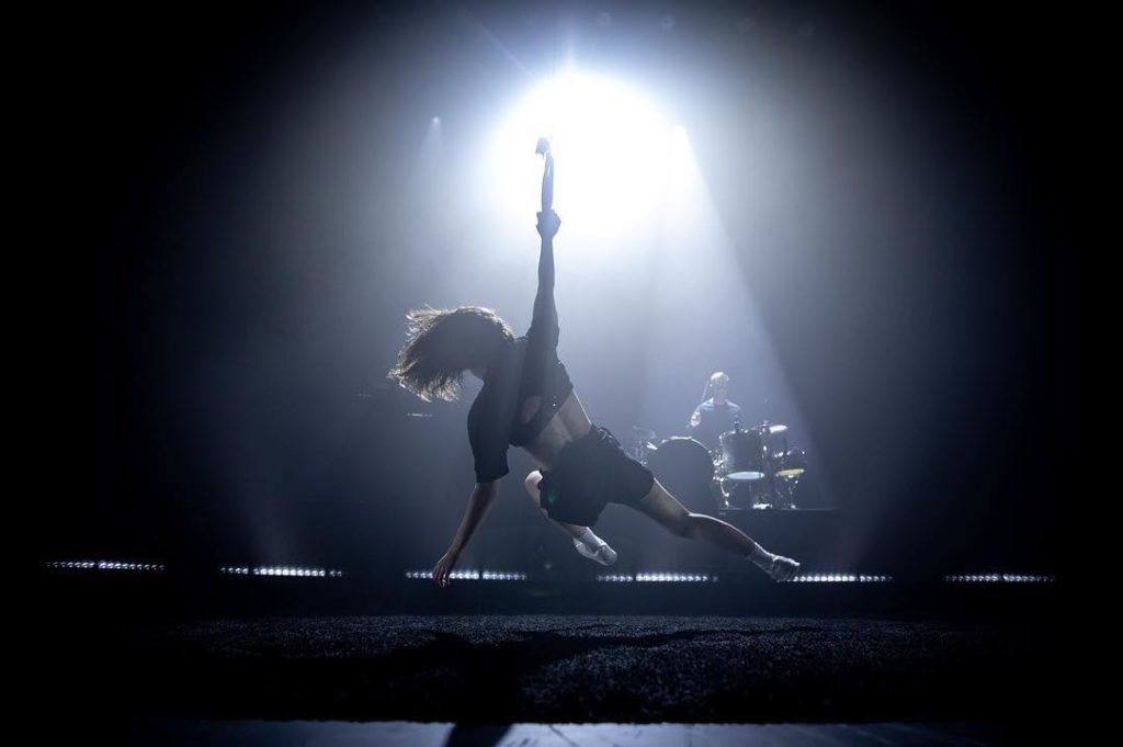 J’ai l’impression que la musique va être le projet personnel qui me permettra de relier les choses : la danse, le jeu sur scène, la scénographie, mon intérêt pour la lumière, la vidéo… L’activité de comédienne reste assez distincte, mais côté danse et cirque j’ai réduit mes projets parallèles parce que je m’y retrouvais moins aussi, j’avais envie maintenant d’invoquer mes propres idées, ma propre mise en scène.