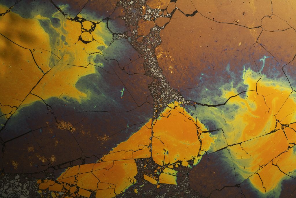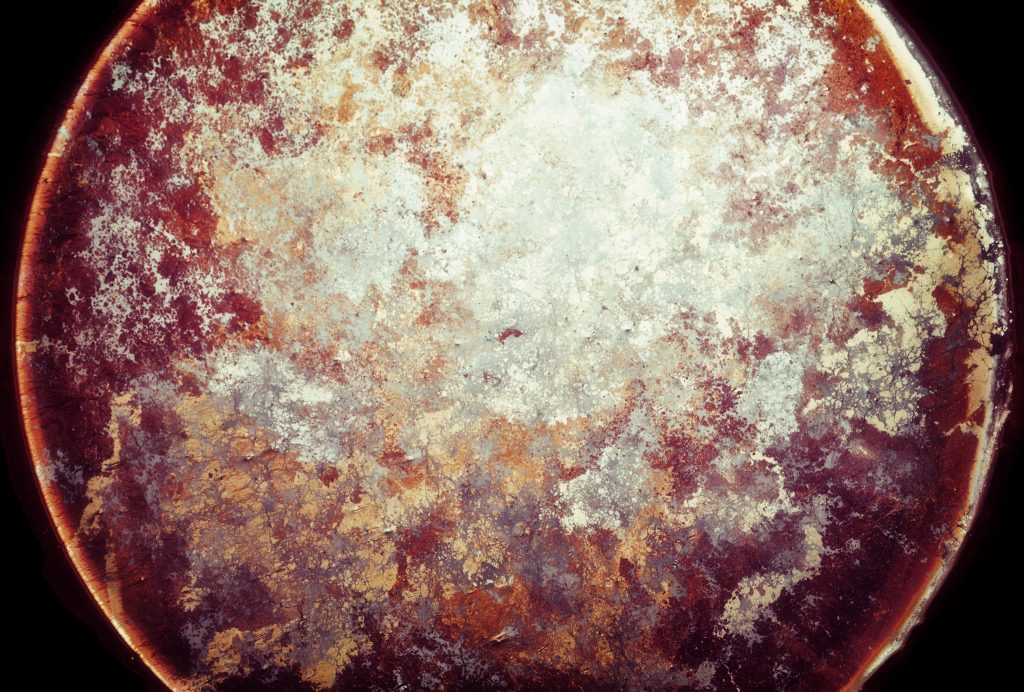Je bois beaucoup de thé, et un jour j’ai laissé traîner un bol que j’avais bu à moitié sur le bord de la fenêtre. Quelques heures plus tard, je l’ai récupéré et ça avait fait quelque chose d’étrange. C’était au moment où je commençais à m’intéresser à la photographie. J’ai voulu voir ce que cette chose donnait en photo. J’ai eu un résultat bien meilleur que ce que j’imaginais alors j’ai continué, j’ai expérimenté. J’essayais d’obtenir de nouvelles formes, de nouvelles couleurs en enlevant de la pellicule à la surface.
