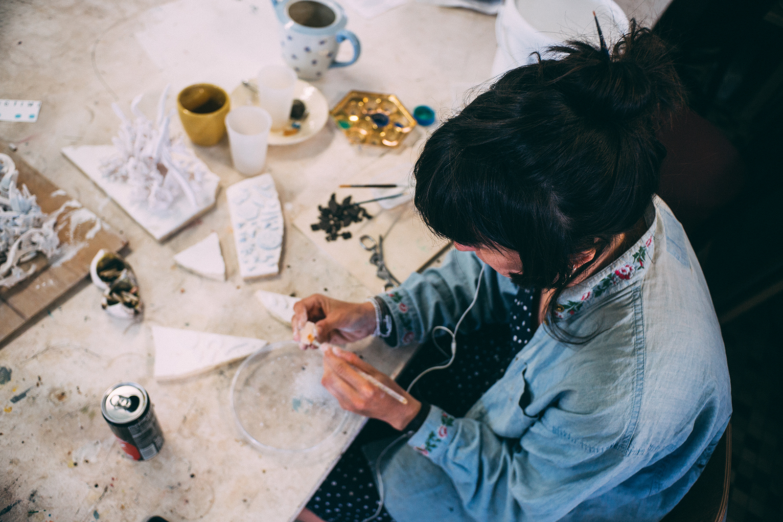 Au Shakirail, l’artiste trouve sa place comme l’artisan et l’amateur. On y propose des ateliers pour adultes et pour enfants. Dans la cour, on entend les trains et les bruits des machines. Et l’espace semble aussi interminable que le nombre d’activités qu’il accueille : salle de théâtre, de projection et de concert, ateliers partagés bois, métal et céramique, artistes en résidence permanente ou temporaire, décors et costumes, ciné-club… Entre la salle commune et la bibliothèque se trouvent un laboratoire photo et un minuscule espace d’atelier pour le cinéma d’animation. Donnant sur le jardin, en dessous de la cuisine et en face du potager, on découvre un atelier de réparation et création de vélo.