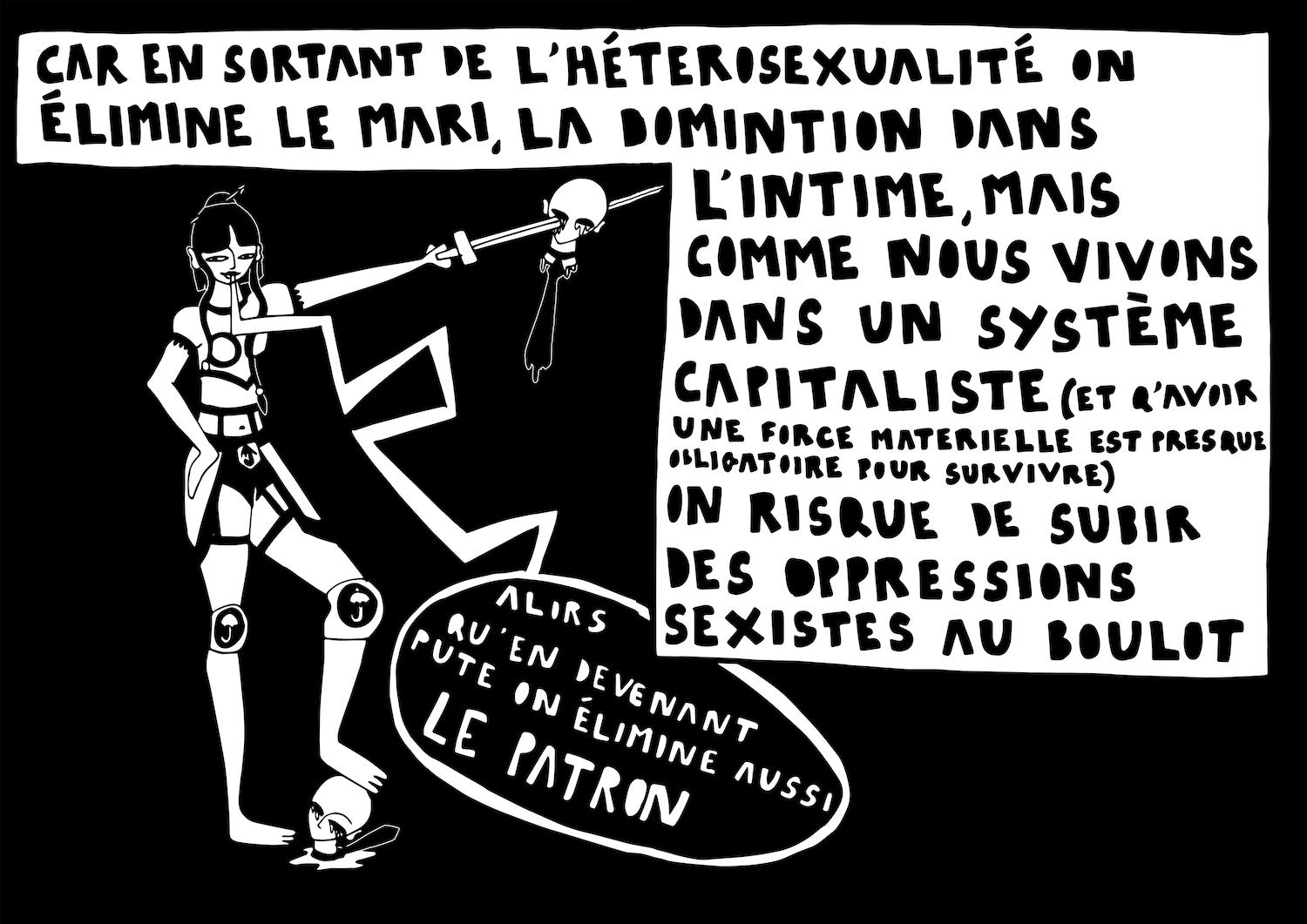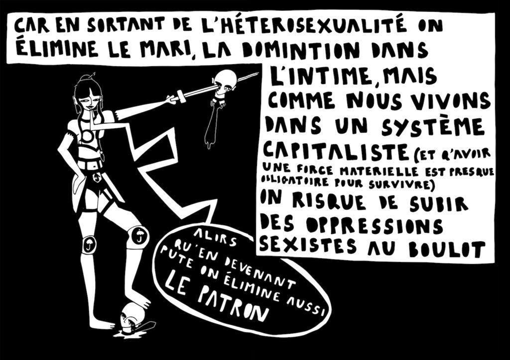 On sent une évolution dans ton rapport intime au travail du sexe dans ta BD, on parcours ton intimité, on découvre ton humour et ton envie de partir ailleurs. Ton rêve c’est du coup d’aller construire ton utopie, exilée de la norme, te désintoxiquer pour finalement rester entre queers, sales féministes et nouvelles sorcières ?