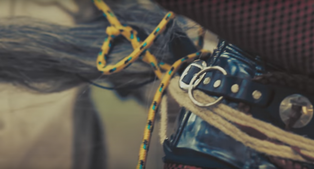 Dès l’ouverture, notre regard est invité à contempler une femme ou un homme se parant étrangement d’accessoires équestres. Non ceux du cavalier, mais ceux du cheval. Cuir, mors, chaînes, crinière et sabots. Les plans rapprochés et ralentis décortiquent la préparation, semblable à celle d’un toréador s’apprêtant à affronter l’animal, les rôles étant chamboulés. Un vieil homme à l’accoutrement de cow-boy dans les bois se fait maître d’une cérémonie de bondage qui débute. Selle sur le dos, une cavalière apparaît et s’installe. Commence alors un voyage dans les airs, manège dérangeant et poétique. Revenu à terre, l’être humain-animal reçoit une tape sur le dos, comme la récompense d’une belle performance.