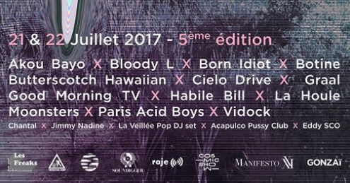 Cette année, la programmation est divisée en une partie rock et une plus électronique. Côté rock, vous pourrez voir Born Idiot, que nous avions rencontré au Biches festival l’été dernier, ainsi que Good Morning TV, Moonsters et Cielo Drive entre autres. Côté électro, il y aura BOTINE, Graal et Paris Acid Boys, les petits protégés de Tripalium Corp, ainsi que Akou Bayo, Bloody L et Vidock, tous issus du label Abstrack. Pour la première fois, le festival se verra doté d’un espace « Chill » où la détente sera accompagnée de DJ sets de Acapulco Pussy Club, Chantal et bien d’autres!