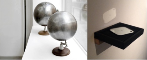 Eclipse, 2013. Graphite sur globe terrestre © Caroline Corbasson & Signals, 2014. Survival mirror ESM-1 from 1940 © Caroline Corbasson