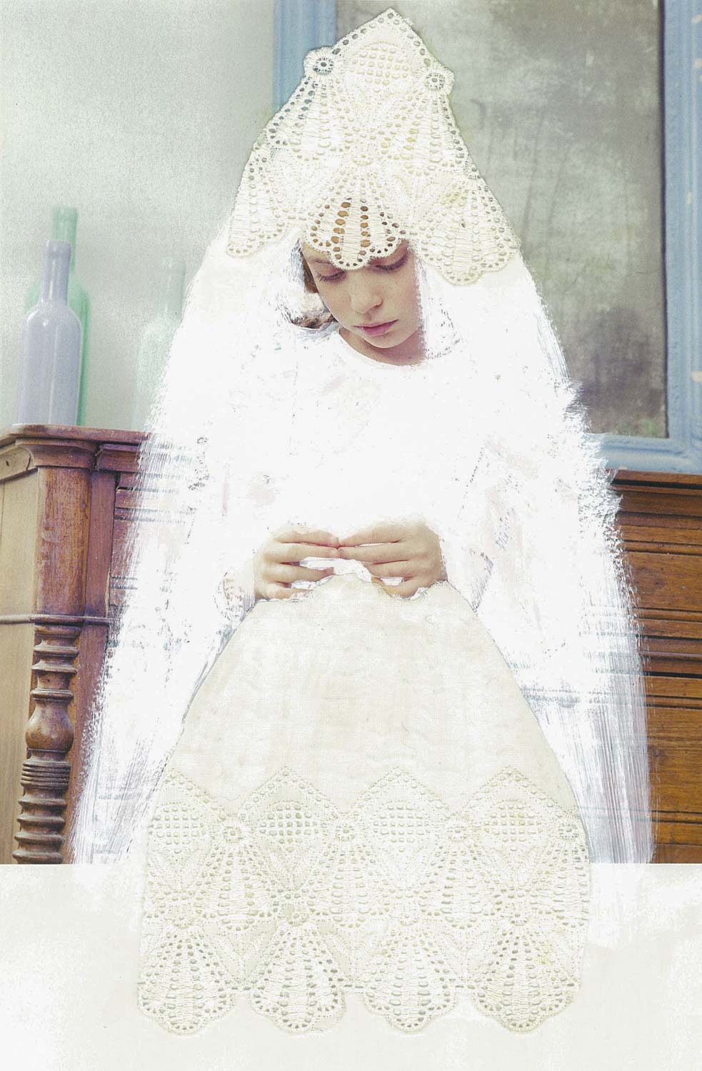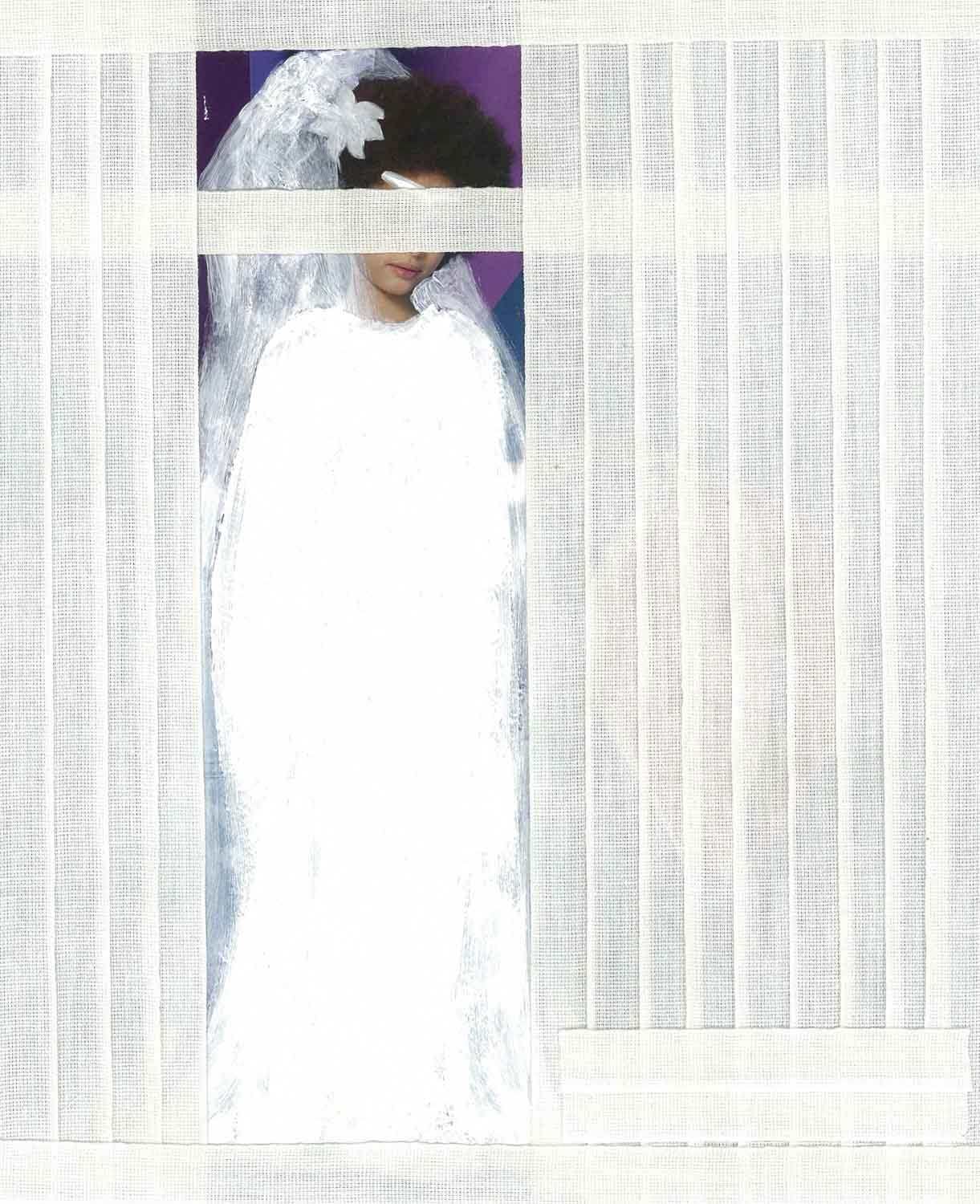Entre magazines et dentelles, Ludovica Bastianini crée une identification aux victimes de mariages forcés dans In your place (2016). Une confrontation entre deux mondes totalement différents selon l’artiste. Pourtant, il émerge un parallèle critique avec la condition des femmes dans nos sociétés occidentales, le sexisme mal voilé des images publicitaires et de l’éducation des enfants.
