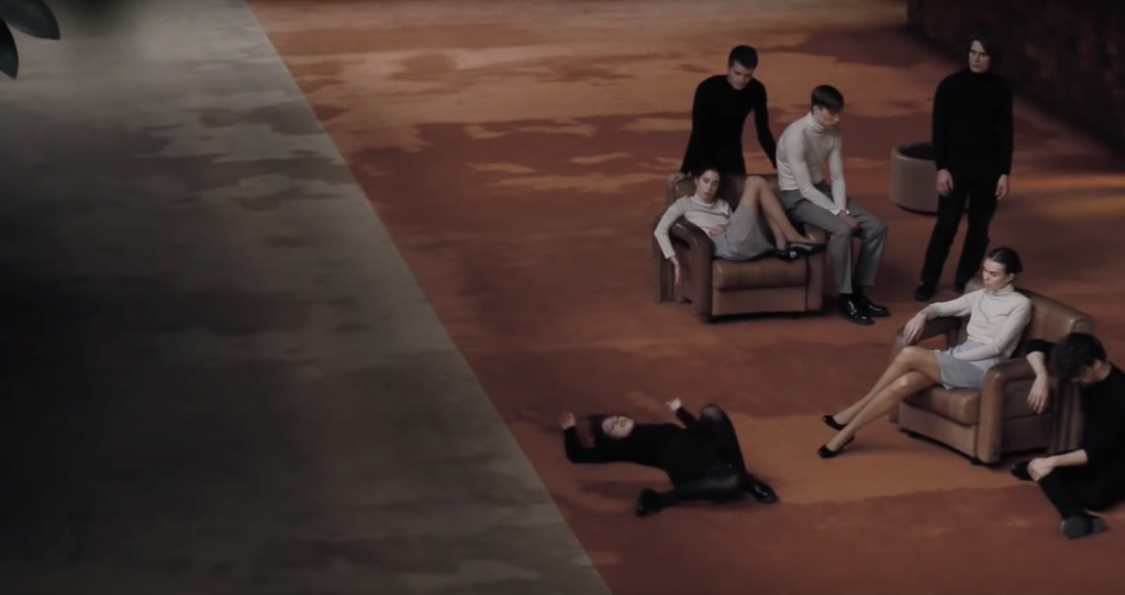 À l’image, un décor de théâtre vintage aux tons orangés et sable, empli de personnages aux déambulations mystérieuses et aux contorsions expressives. Réalisée par un duo d’artistes slovaques à Bratislava, Adam Csoka Keller et Evelyn Bencicova, la vidéo se démarque par une esthétique post Guerre Froide. Mise en scène et montage jouent avec la répétition, la différenciation vis-à-vis du groupe ou encore l’absurde, tout en brouillant les pistes entre performance réelle et mise en abîme du processus de création.