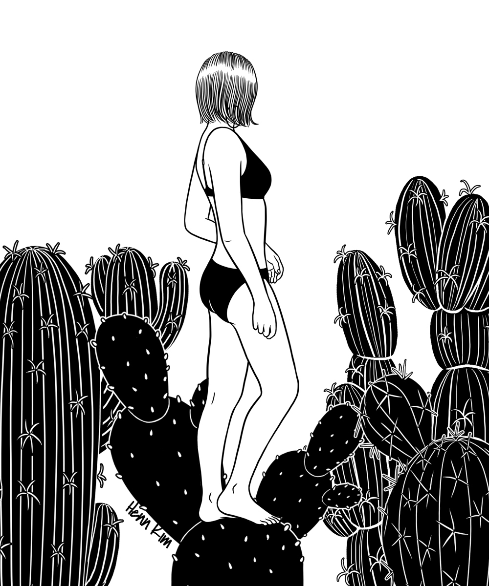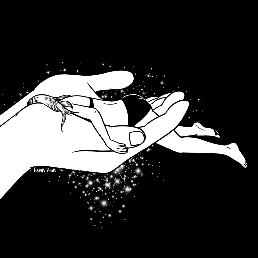 Henn Kim fait partie de ces illustrateurs que vous pouvez découvrir d’un swipe sur Instagram et qui vous absorbent aussitôt dans un univers unique. Le trait est doux et lisse, mais les thèmes de ses illustrations sont parfois sombres et révèlent une sensibilité profonde. Les personnages souvent lilliputiens incarnent de façon universelle les sentiments de solitude, de peine, mais aussi l’émerveillement et un romantisme léger. L’imagination de la jeune Sud-Coréenne est particulièrement prolifique et donne forme à une nouvelle métaphore illustrée tous les trois jours environ, des images pas si sages qui nous touchent.