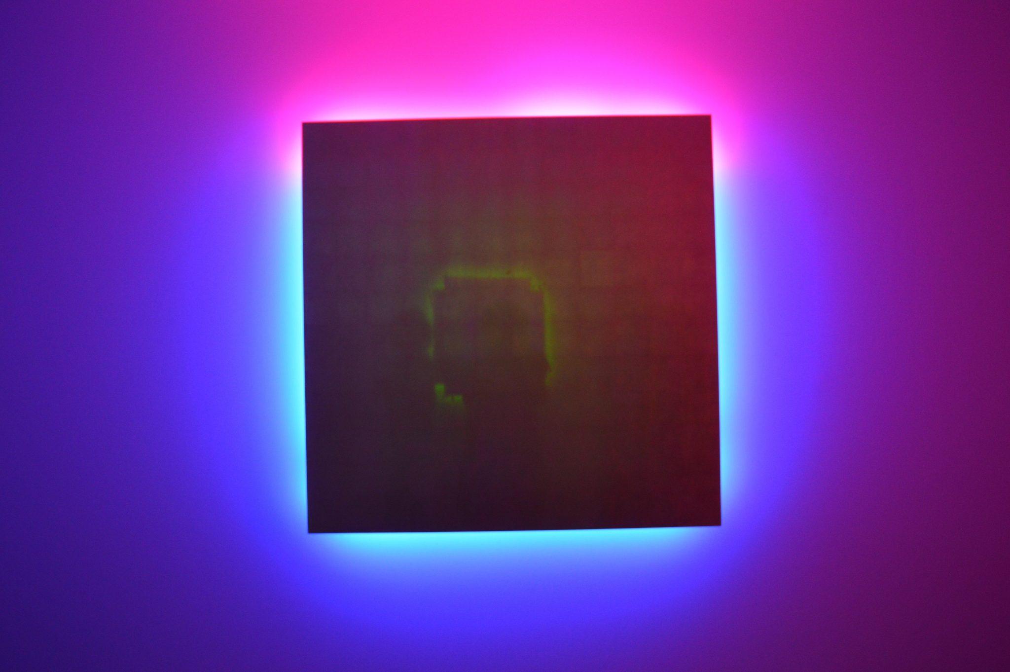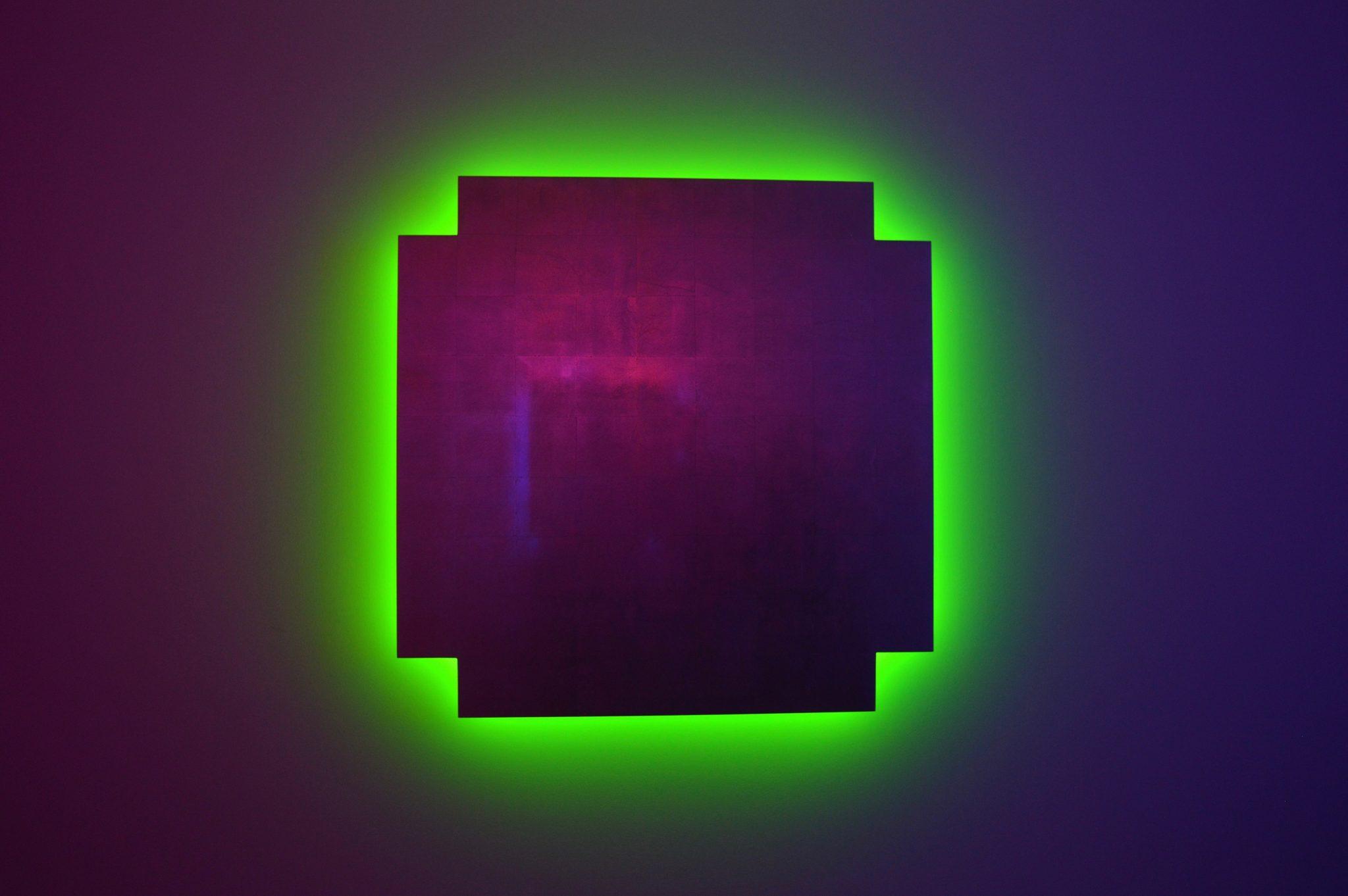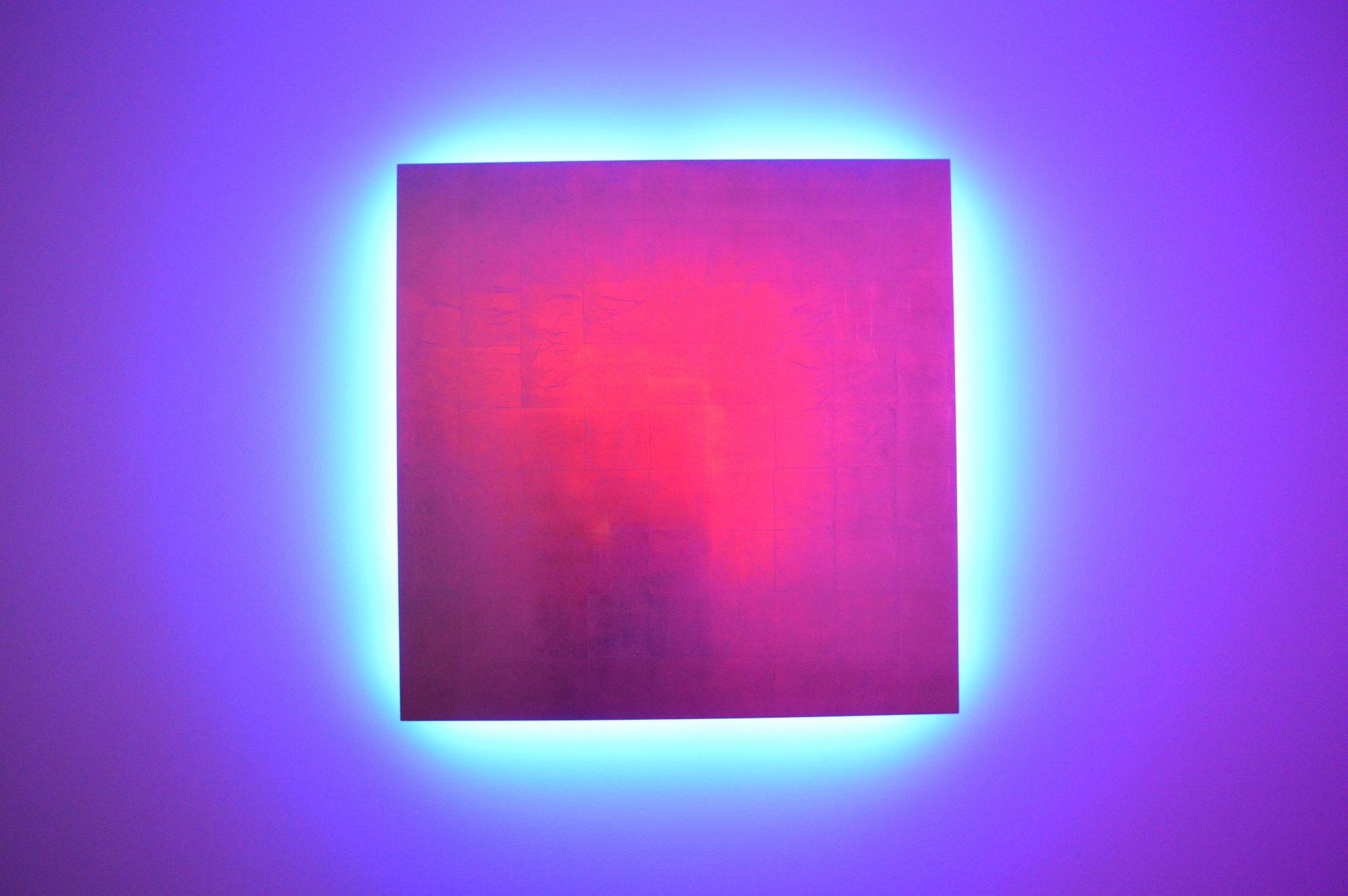 Déclinant l’art du néon vers le thème de la mémoire, l’installation Remembrance de Stephen Antonakos (1987-1989) plonge le visiteur dans une atmosphère enveloppante. Les formes géométriques minimalistes rappellent les tableaux suprématistes de Malevitch. Les néons de couleur illuminent la salle comme autant d’auréoles surnaturelles autour de ces icônes dédiées à la mémoire de ses frères et sœurs, et produisent des reflets subtils et précieux sur leur surface recouverte d’or ou d’aluminium.