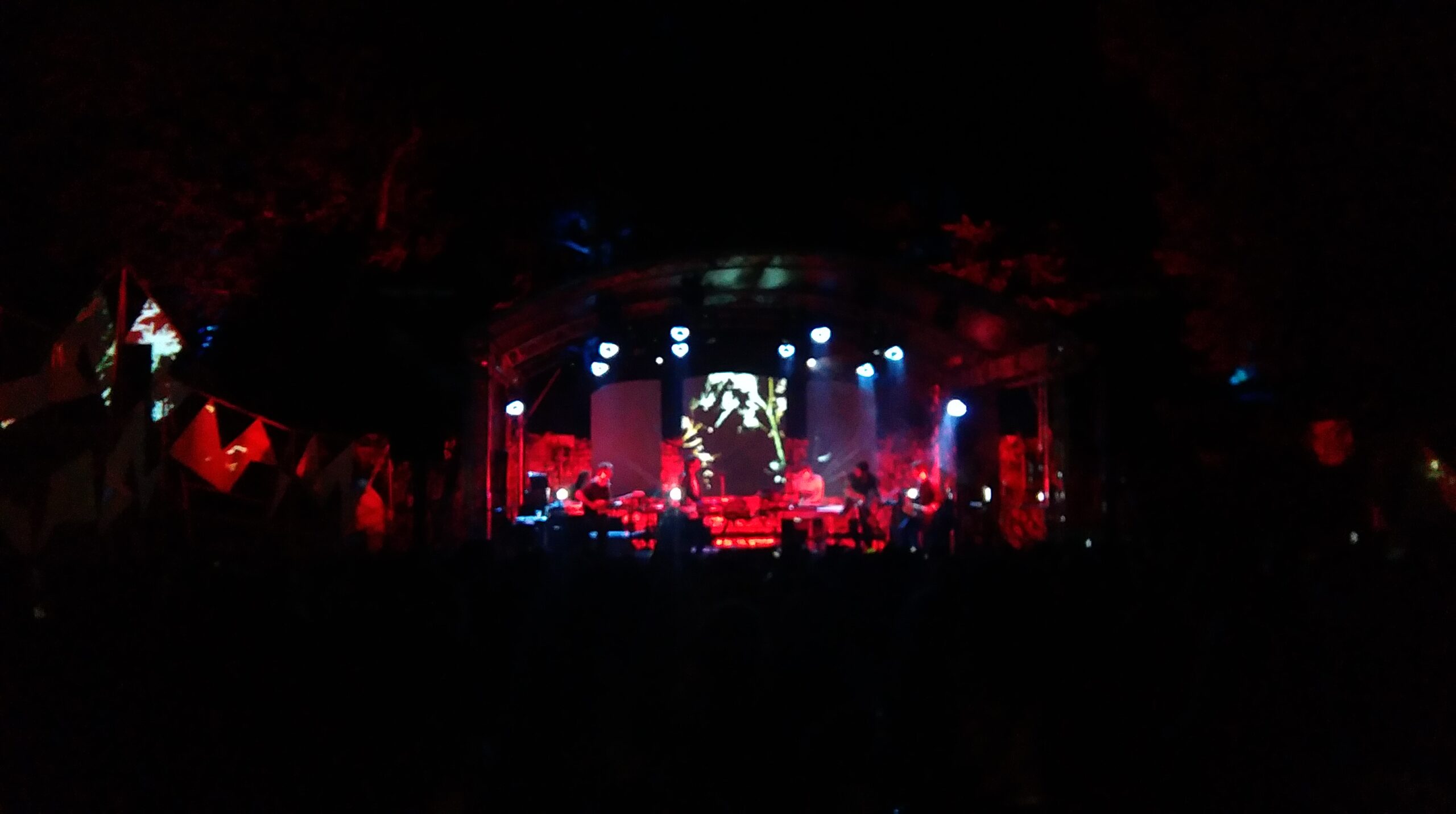 La suite de la soirée, ou devrais-je dire de la nuit, c’est plus sérieux. Au moment même où le ciel devenait plus sombre, la musique le devenait également. Se sont enchaîné ainsi deux lives incroyablement tenaces, dans le sens de l’audace et de la rigueur. En effet, Bloum d’abord et Jacques à partir de 00h30, ont imposé leurs musiques surprenantes soit par le mix des instruments (flûte traversière et saxophone) pour Bloum, soit par les objets toujours plus improbables et spontanés qui sont la signature de Jacques. Ces deux prestations ont véritablement modifié l’ambiance du festival par une rupture entre les sons estivaux qui les précédaient et la nuit profonde qu’ils ont établie.