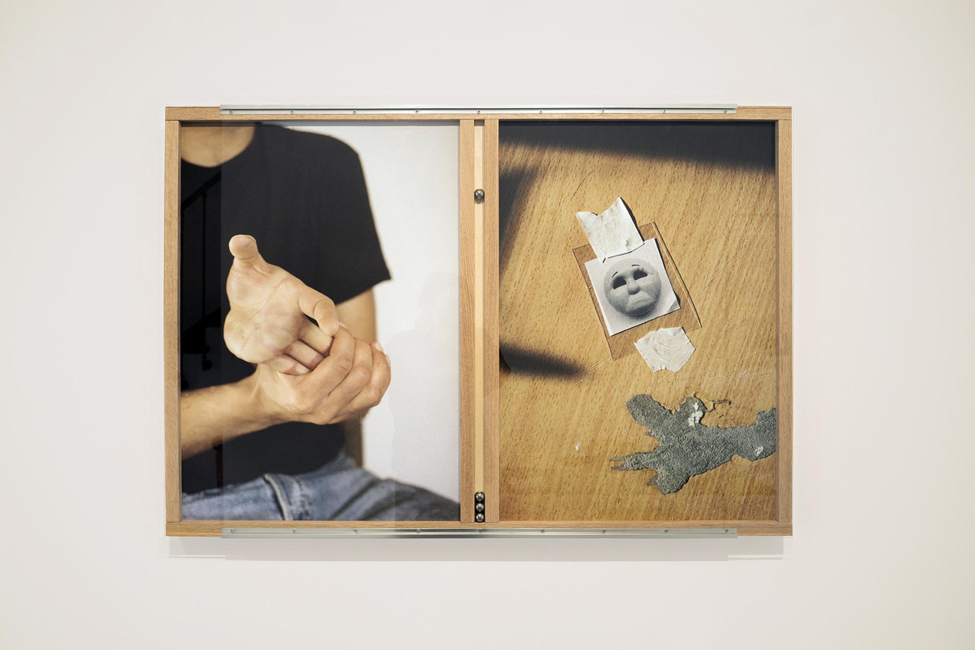 Certaines photographies sont présentées dans un double cadre, séparées par une nervure dans laquelle circulent des billes de métal : on observe les deux images et les billes, coincées dans leur trajectoire, comme on regarderait les fourmis dans leurs boîtes. D’autres apparaissent en transparence sur du plexiglass, d’autres encore sont des transferts sur plâtre. Sur celles-ci s’étalent de larges éclaboussures, renvoyant à l’idée d’une société liquide conceptualisée par le philosophe Zygmunt Bauman, qui raconte le triomphe du consumérisme, où l’humain·e et ses affects sont des biens consommables parmi tant d’autres. « Je parle de liquidité sur une matière poreuse, issue d’une réaction de solidification. Et j’aime l’ambiguïté que le transfert apporte aux images, que ça altère les couleurs : il y a justement quelque chose qui échappe au contrôle » précise Flora Aussant.