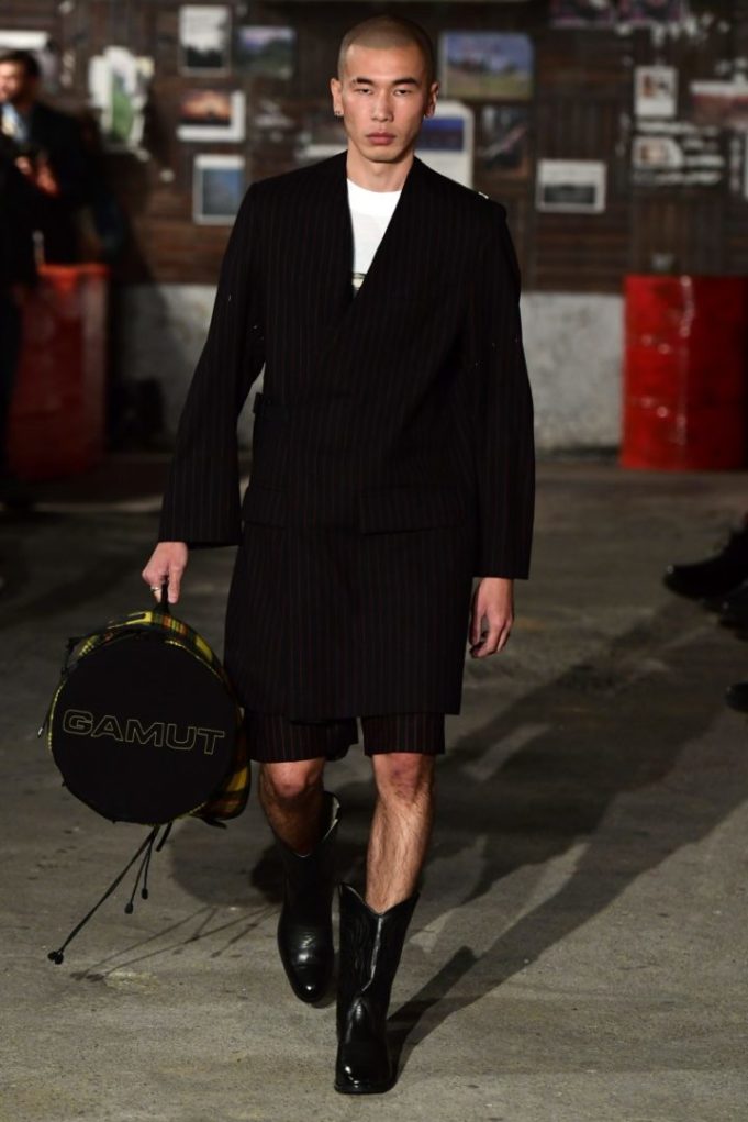 Il est rafraîchissant de voir que c’est justement à Paris, notamment aux alentours d’Aubervilliers, qu’un débat sur le nouveau système-mode se prolonge. Nourri de références techno, se démarquant par des coupes déstructurées rappelant les années d’or de l’anti-fashion, GAMUT appartient à cette vague de maisons qui ne vont pas s’adapter aux règles en place en remettant en question tout le fonctionnement de l’industrie du vêtement. A commencer par la place du créateur. Reproduire l’expérience des six d’Anvers pendant les nineties, continuer de faire sortir la mode de ses lieux officiels : entre réminiscences du passé et ancrage dans l’urgence du présent, GAMUT participe au mouvement de remise en question de notre mode de consommation du vêtement.