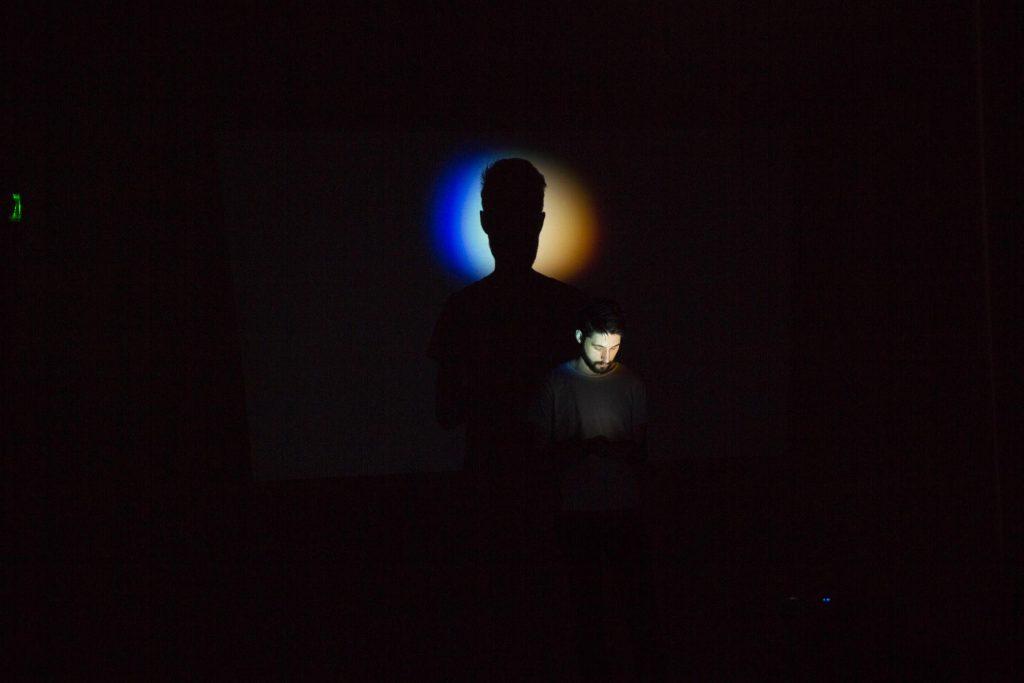Au premier abord, Gilles Sage intrigue : il dénote radicalement face à la population des étudiants des Beaux-Arts majoritairement exubérante, extravertie voire criarde. Il propose une lecture partielle des « Fragments », bribes introspectives réalisées durant ses dernières années d’école. Il s’extime de manière totalement dépouillée. Des formes géométriques se projettent pendant qu’il lit avec son téléphone face au public. La mise en scène est calibrée : minimale et froide. Mais rapidement un équilibre se pose grâce à l’humour pince-sans-rire des textes, le ton est subtilement juste, peut-être plus évocateur que toute autre gesticulation ou ornementation.