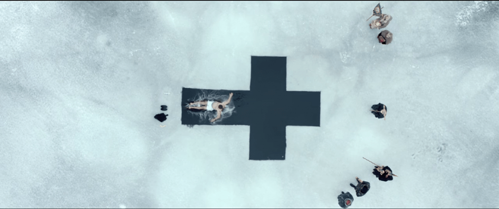 Cyrillique et neige nous placent immédiatement dans le contexte. Le groupe nous invite à un « plongeon suprême dans les eaux glacées de Russie ». L’esthétique est religieuse : croix, ornements dorés et soutane. Nous suivons le pécheur dans sa quête d’absolution jusqu’au lac glacé. Au son de la voix haut-perchée, pleine de douleur, la course est effrénée. Isaac Delusion mêle à la perfection un son puissant et étrange avec les atmosphères magiques de la Russie orthodoxe. Sous les regards des femmes et des icônes religieuses, on se sent nous-mêmes pécheurs. Nous attendons aussi l’absolution.