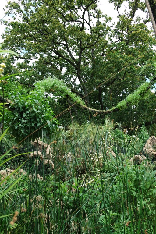Des lianes folles s’épanouissent autour d’une oasis centrale. Ce jardin est comme une mini-jungle du futur, sans racines. L’ambiance suave ne doit pas vous tromper : ces plantes poussent sur un terrain sec… Malgré l’apparente fragilité de la structure, l’ensemble est fait pour se développer dans un environnement pauvre en ressources énergétiques. Créé par Jean-Philippe Poirée-Ville et Gérard Pointet.