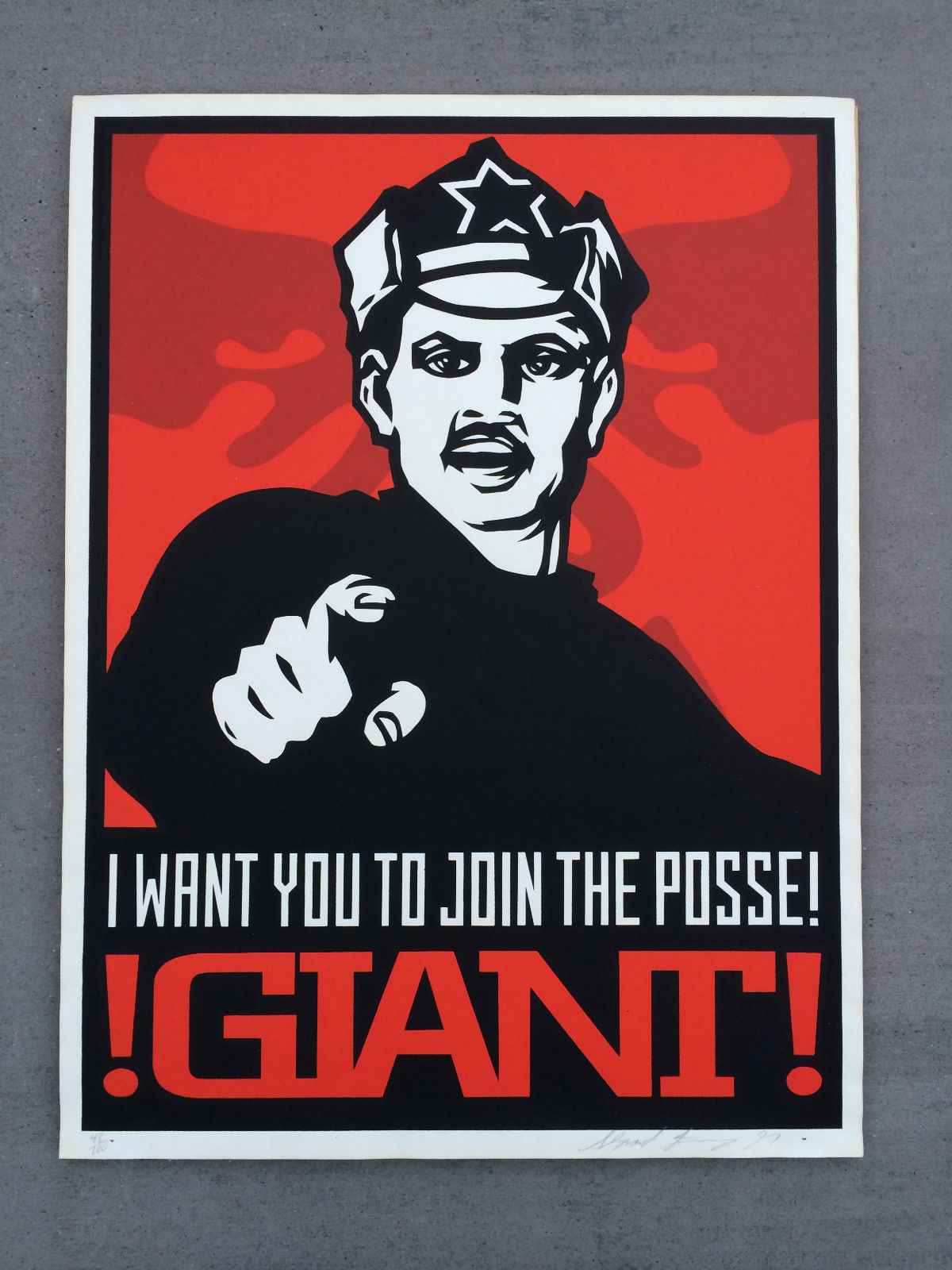 Jérôme Catz : Non c’est plutôt rare, il en rigole quelquefois, mais dénonce les lobbys et les cercles de pouvoir, les allusions aux sociétés secrètes sont minimes. Par contre on retrouve presque chaque fois sa signature graphique, avec le visage stylisé d’André the Giant jusqu’en 1997 puis ce même visage au centre d’une étoile à cinq branches. Ensuite il y a un style, il a imposé une patte artistique et en fonction du sujet va aller capter des éléments graphiques. Il se sert souvent d’une photo ou d’une illustration à la base de ses travaux, c’est une sorte de compositeur. Dans cette expo on a quasi que des portraits ou des affiches de concerts, mais dès que l’on rencontre son travail militant, il s’inspire de la propagande soviétique, du travail de Rodchenko, de Barbara Kruger et de beaucoup d’autres qu’il cite souvent.
