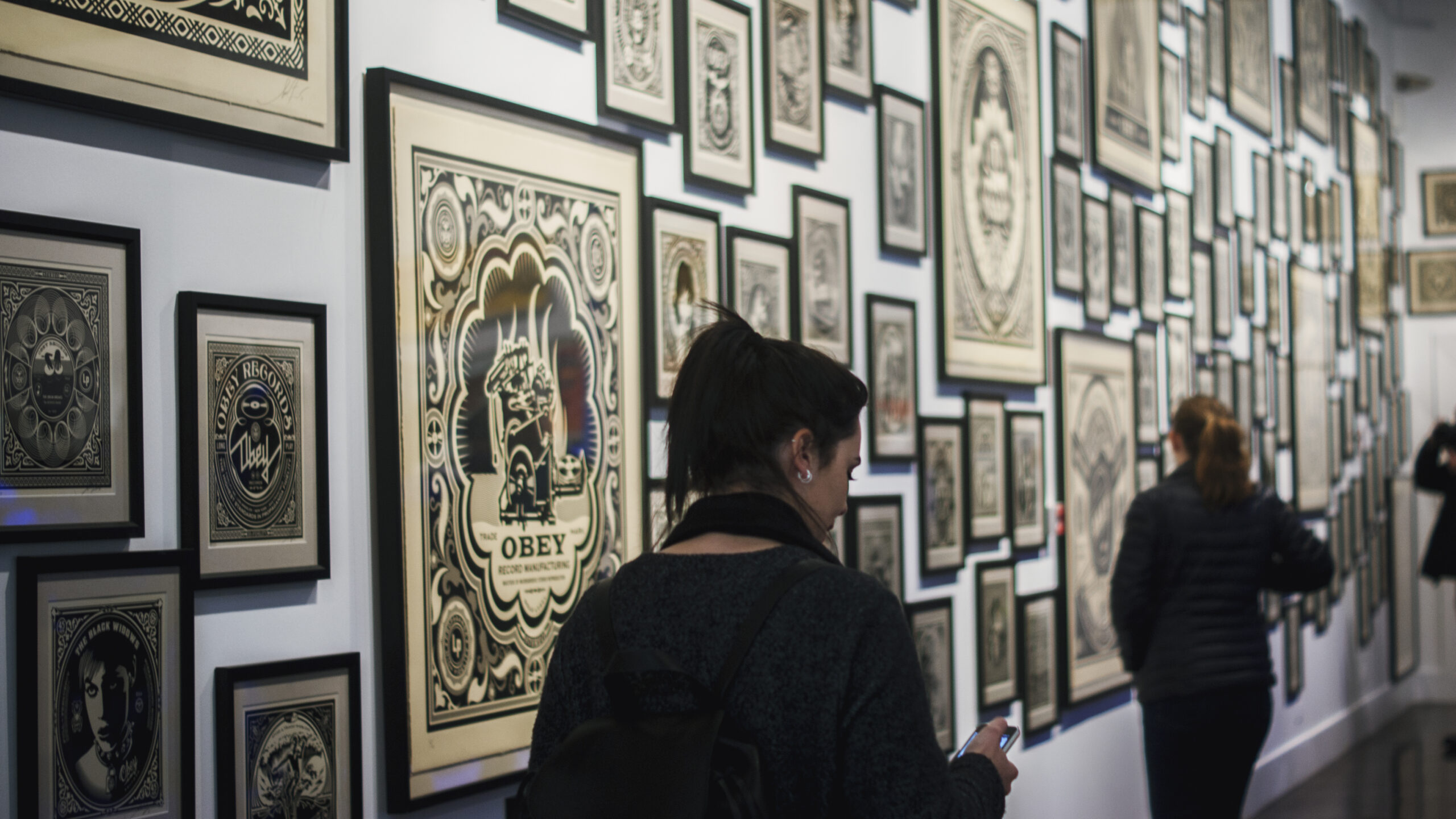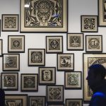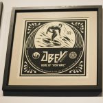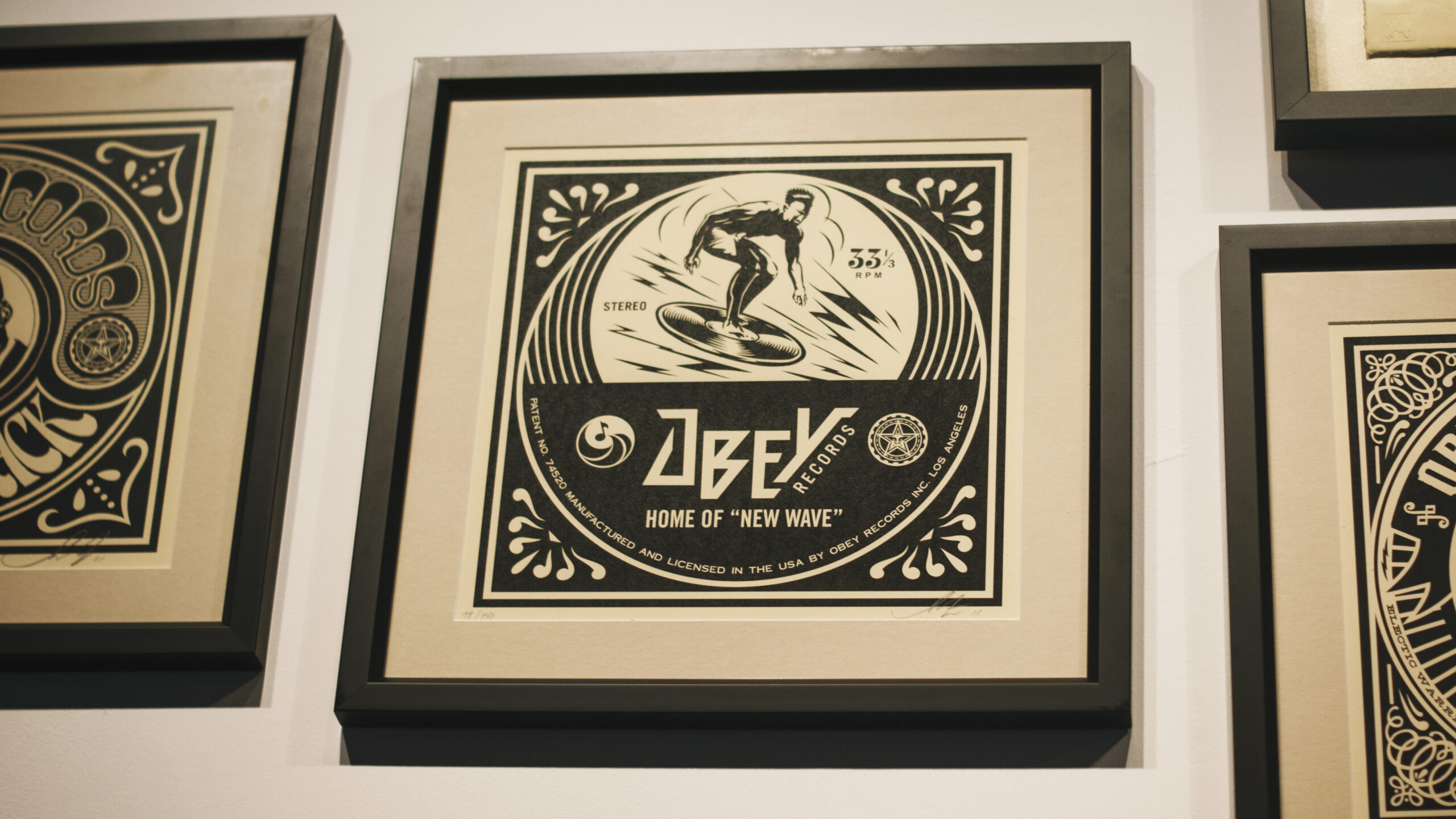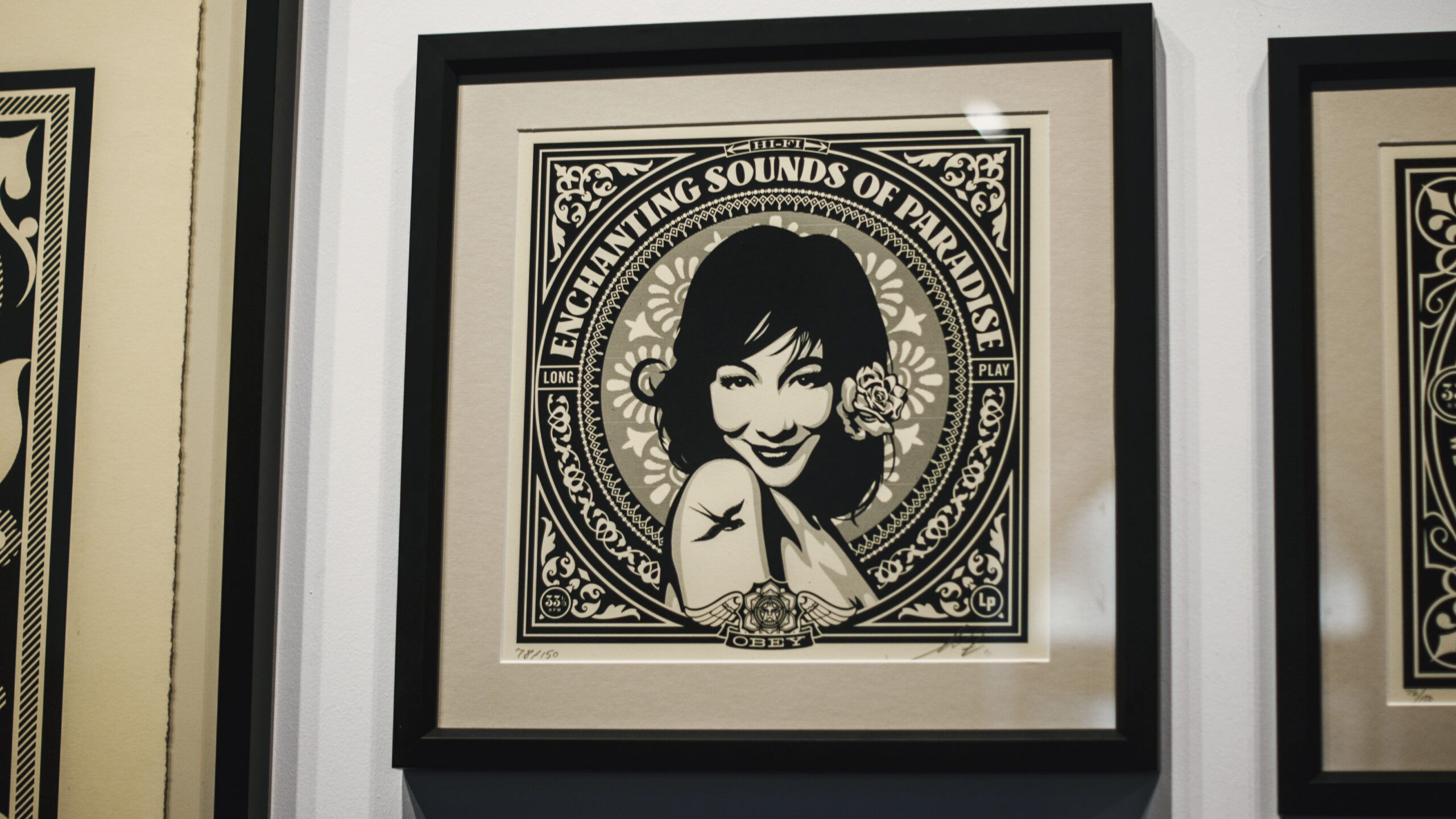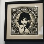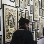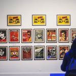 Jérôme Catz : On a eu d’excellents retours de la part des gens sur la scénographie, sur le choix de l’accrochage. Généralement le travail de Shepard Fairey est toujours exposé de manière très alignée. Son travail s’y prête parce que c’est toujours les mêmes formats donc c’est facile. On a eu beaucoup de retours sur les réseaux sociaux, des États-Unis aussi, des « On aimerait bien avoir ça ». De la part des visiteurs, de très bons retours sur les cartels, ils ont beaucoup apprécié l’accessibilité des textes et les synthèses. Ce sont des clés de lecture et de compréhension mais qui ne sont pas des tartines.