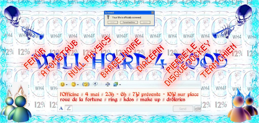 Ça fait moins d’un an que l’on se connaît réellement tous. Tout est allé très vite, on est allés dans le même délire : le gabber, le hardcore, la débilecore, un peu de fun ; en même temps on partage les mêmes cercles. On a tous des connexions différentes en plus de ça sur Paris, de partout, et cette envie de rameuter pleins de gens de différents horizons. Et, du coup, il y a un peu plus de deux mois, on s’est décidés à monter notre collectif et à organiser une soirée (le 4 mai à l’Officine).
