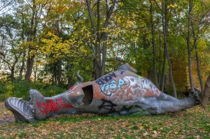 Nous avons vécu une expérience hors du commun, sur la pointe des pieds, à escalader des murs de branches, suivre des vieux chemins de fers, nous promener au milieu d’un décor unique qui lutte contre le temps. La nature reprend ses droits, des milliers de personnes, de graffeurs, de squatteurs, de visiteurs, ont laissé leurs marques en décorant, et hélas, parfois en détériorant, de nombreuses attractions faisant ainsi se confronter passé et présent, mêlant différentes époques qui donnent à ce parc des aspects de machine à voyager dans le temps. Planté au milieu d’une des plus grandes villes européennes, le Spree Park résiste tant bien que mal, abandonné, comme posé là sans que personne ne le sache.