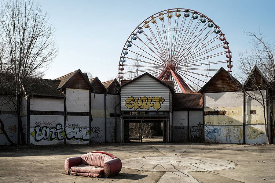 Quelle étrange sensation que de se promener dans un parc à l’abandon, comme au milieu d’un cimetière, imaginer qu’ici, il y a quelques années, des millions de personnes venaient pour passer des journées de détente et de joie. L’ancienne entrée du parc laisse derrière elle de vieilles caisses enregistreuses rouillées et le sol jonché de pellicules Kodak inutilisables à notre époque. Malgré les nombreuses griffures de ronces et piqûres d’orties qui décoraient maintenant nos jambes et nos bras, nous étions heureux de vivre pendant quelques minutes au sein de ce lieu rempli d’histoires.