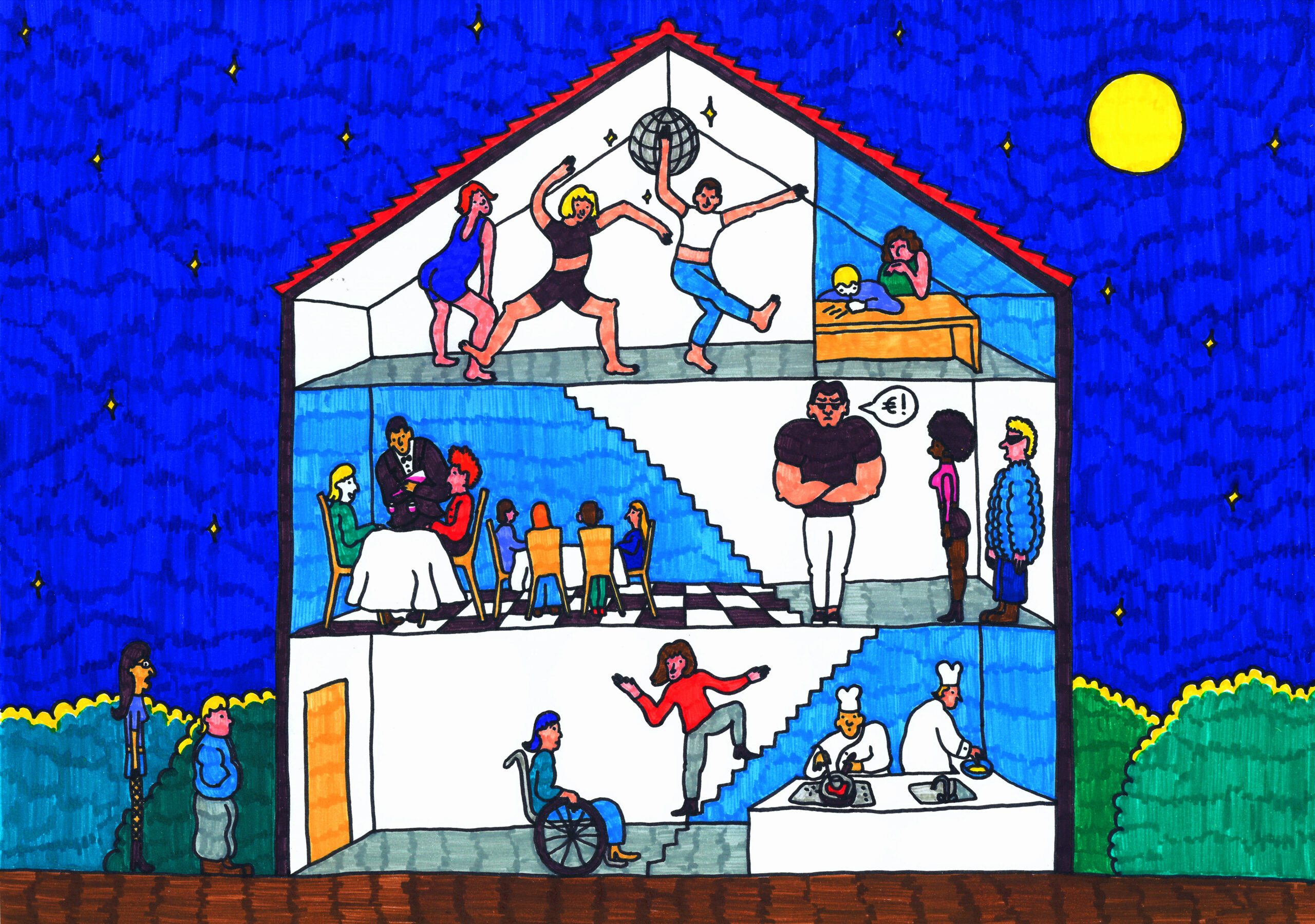 L’utopie amicale est nécessaire à la création de nouveaux idéaux de vie – tout le monde ne se retrouve pas dans le couple et la famille traditionnelle, qui peuvent parfois être des lieux de violence, de dépendance ou d’isolement, notamment pour les femmes et les personnes queers. L’amitié ne dessert aucun projet institutionnel : c’est un lien gratuit, non contractuel, qui repose sur un choix libre, et devient donc potentiellement un terrain d’épanouissement, de solidarité, de soin radical. Mais pouvoir compter sur un réseau d’amitiés solide n’est pas donné à tout le monde : accéder à des relations choisies, durables et soutenantes suppose des conditions économiques, sociales et symboliques favorables. À mesure que les discours en faveur de l’amitié et des communautés fleurissent, un fossé se creuse entre les récits dominants et l’expérience quotidienne de celles et ceux que les structures sociales maintiennent à la marge et oublient.