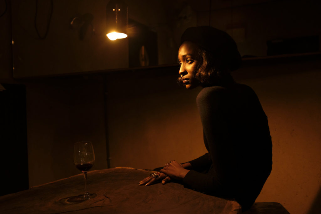 Lous préfère balancer des éclats de rire à la gueule de la vie. Elle est heureuse et s’extasie de tout : de la beauté des tables en bois, de ce verre de vin qu’elle savoure avec nous. La conversation glisse toute seule, on en oublierait presque pourquoi on est venues. On a parlé de sa passion pour le Japon où elle aimerait vivre, « à Hokkaidō, dans la campagne et loin du monde ». On a parlé films d’horreur, Lupita Nyong’o, potterie, féminisme, être noire, et le dire. Et puis, on a parlé de ce symbole qui est le sien : « Les mains levées vers le ciel ». Le dessin illustre son nouveau titre : « Dilemme ». Il représente un geste « d’extrême joie comme de lamentation », elle nous explique. Cette ambiguïté, « c’est tout moi, c’est ma vie ». Le jour où on la rencontre, elle l’a peint en doré sur son front. Alors, quand elle se réjouit de la sortie de son album, les yeux écarquillés et les paumes ouvertes, la mise en abîme cristallise l’instant dans un tableau un peu mystique. Morceau de discussion avec l’artiste.
